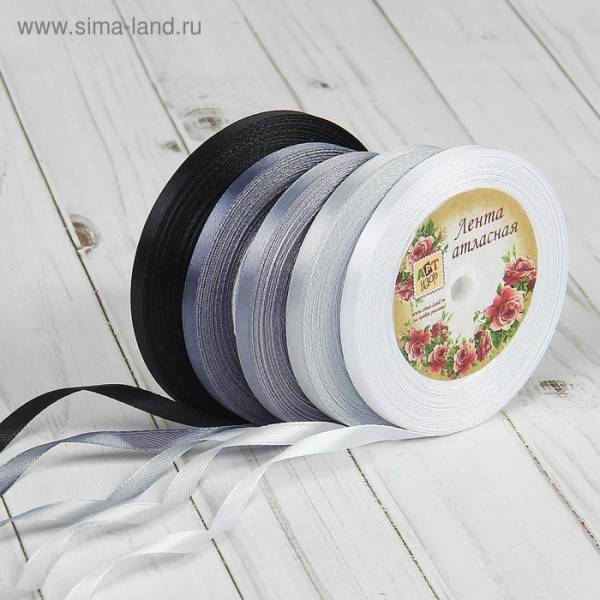 Набор атласных лент, 5шт, размер 1 ленты: 6мм, 23±1м, цвет серый спектр