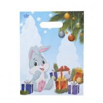 Пакет "Зайчик с подарками", полиэтиленовый с вырубной ручкой, 30 х 23 см, 30 мкм (25шт)