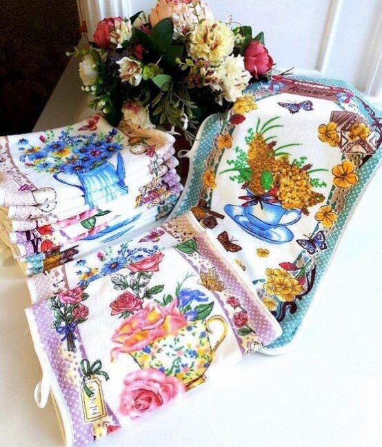 Красивые и яркие полотенца для кухни! Фартуки для хозяек штучно или в кухонных наборах порадуют Вас или того, кому достанется в подарок такой красивый кухонный набор!