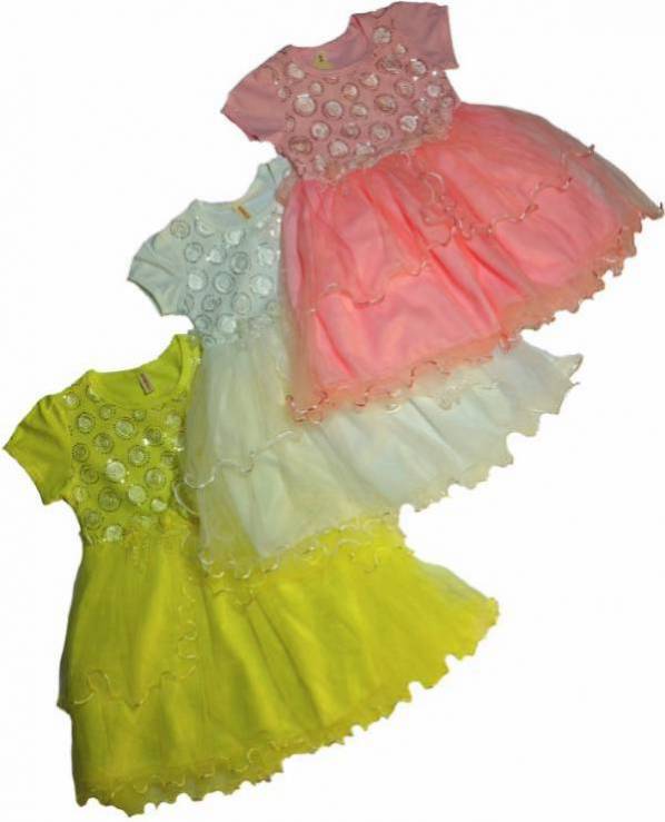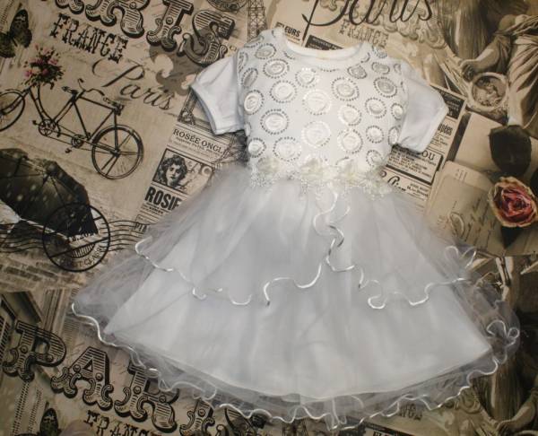 Нарядное платье. Верх - трикотаж х-б, отделка шитьё, юбка в три слоя фатин + хлопковый подклад, сзади завязывается на поясок.