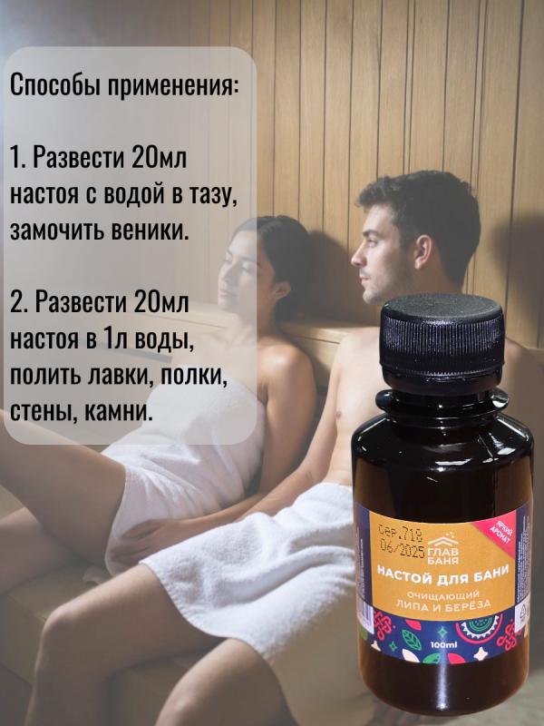 Настой для бани и сауны с традиционным древесным ароматом липы и берёзы, способствует расслаблению и создаёт особую, тёплую, атмосферу в парной. Настой предназначен для запаривания веников и подачи, в разбавленном с водой виде, на каменку и деревянные поверхности