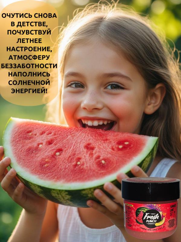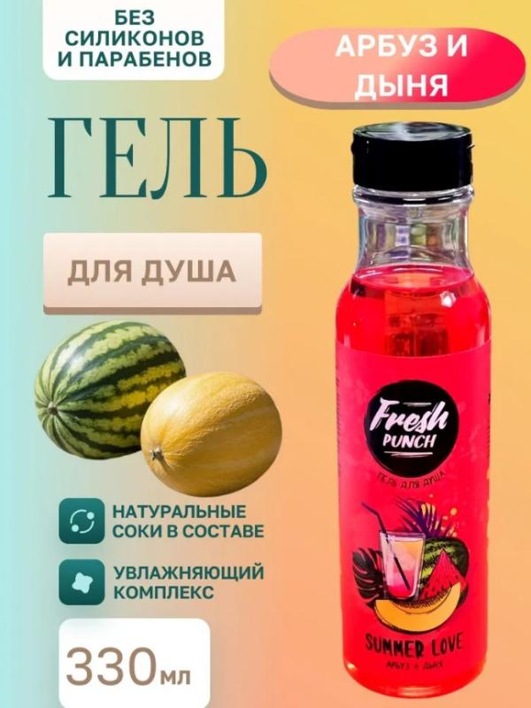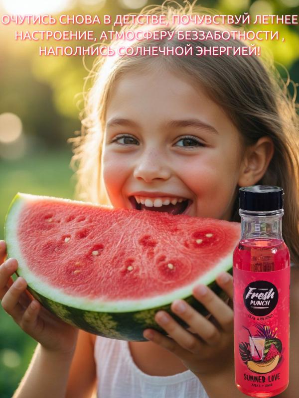 Погрузитесь в атмосферу лета с гелем для душа FRESH PUNCH SUMMER LOVE. Этот освежающий гель подарит незабываемые моменты, наполняя день яркими нотами арбуза и дыни.