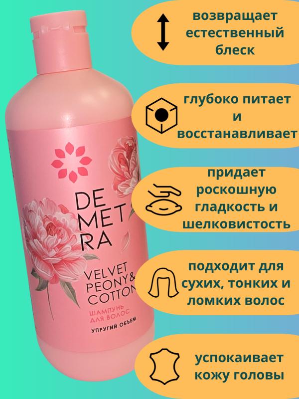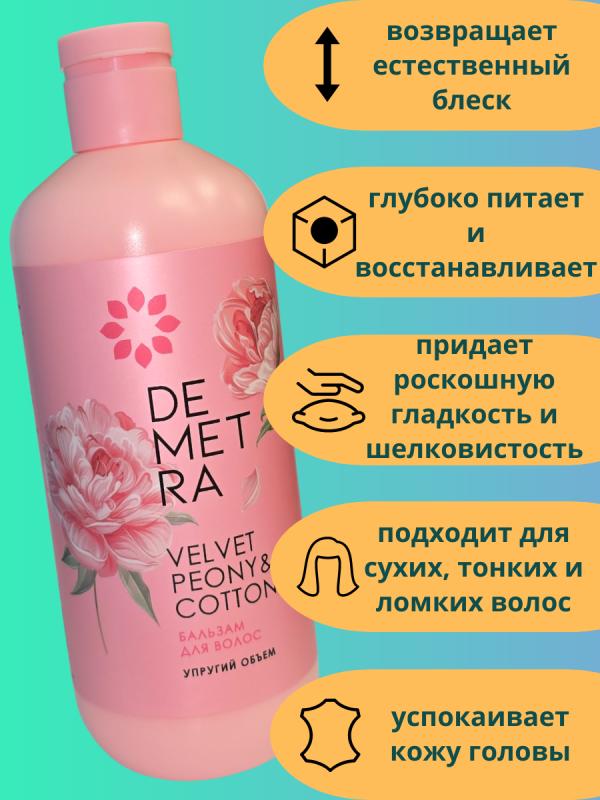 Бальзам-маска DEMETRA Бархатный пион и хлопок - это уникальное средство для ухода за волосами, предназначенное для всех типов.
