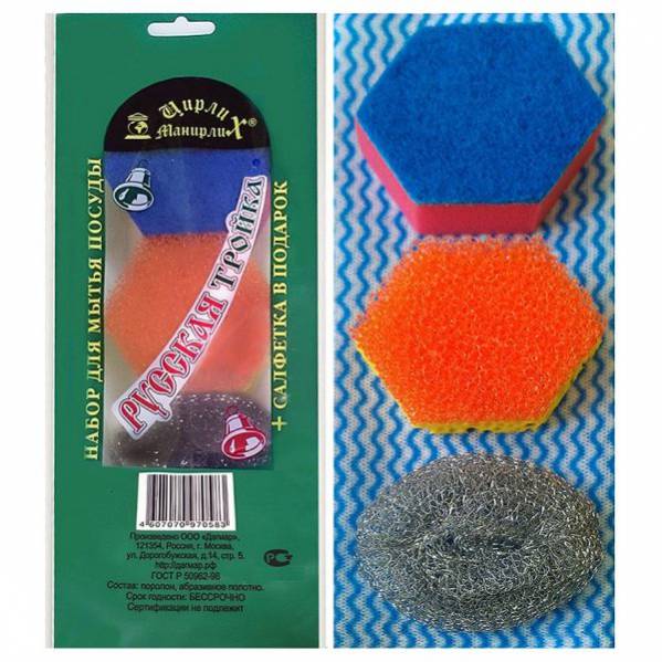 . Идеальный набор для мытья посуды, в котором есть губки разного назначения для разных поверхностей, обеспечивающие быстрый и эффективный результат. Приизготовлении применяется сырье только лучшего качества (Германия). Имеетдлительный срок службы. Это действительно любимый набор для посуды.Состав: поролон, абразивное полотно, сталь, вискозаСрок годности не ограничен.
