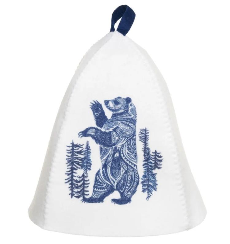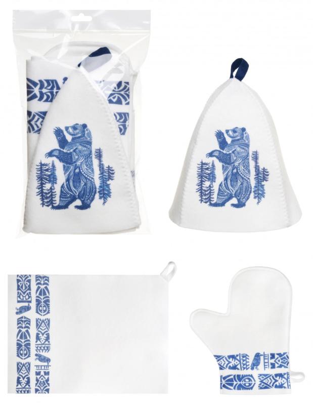 Набор для бани Медведь, шапка + коврик + рукавица