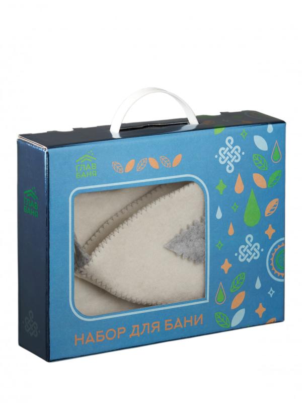 Набор в подарочной коробке с удобной ручкой. Все изделия выполнены из плотного войлока и дополнены петелькой-подвесом. Изделия из натуральной шерсти - это защита от высоких температур. В наборе собрано все необходимое для комфортного нахождения в бане(шапка,рукавица,коврик)
