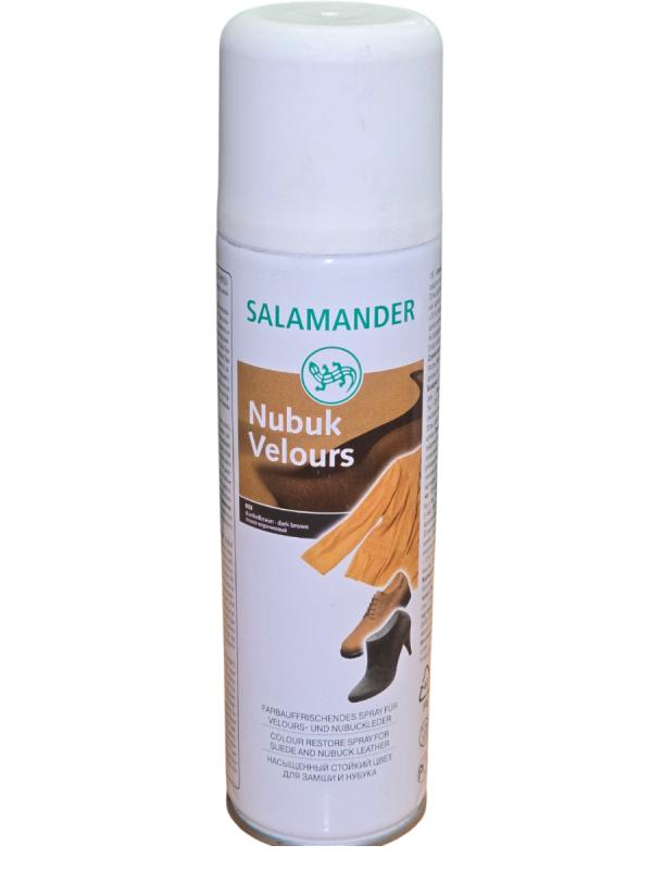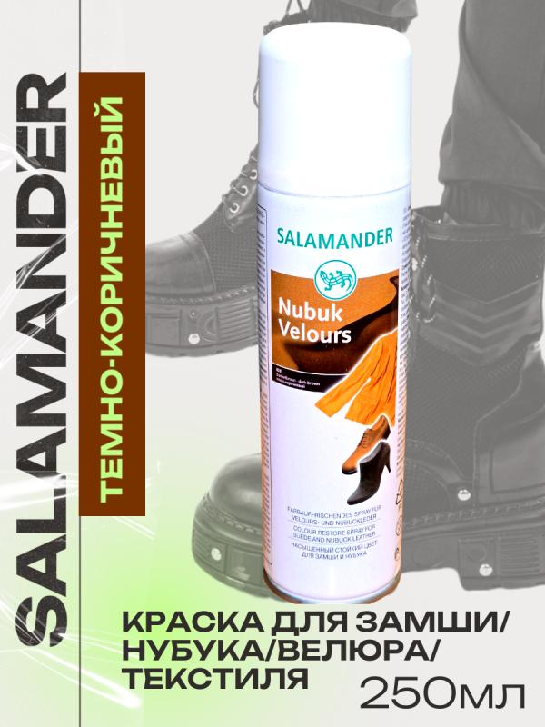 Краска для замши, велюра и нубука Salamander, тёмно‑коричневаяВерните любимым вещам безупречный вид без похода в мастерскую! Краска Salamander создана специально для деликатных материалов — она восстанавливает цвет и продлевает жизнь обуви, одежде и аксессуарам.Почему стоит выбрать именно её:Идеальное соответствие. Глубокий тёмно‑коричневый оттенок выглядит благородно и сочетается с большинством классических моделей.Бережная формула. Не разрушает структуру замши, нубука и велюра, сохраняет их мягкость и бархатистость.Стойкий результат. Цвет не смывается при лёгком намокании, не выцветает на солнце и выдерживает повседневную эксплуатацию.Простота использования. Наносится равномерно, без разводов и пятен.Для чего подойдёт:обувь (ботинки, сапоги, кроссовки)
