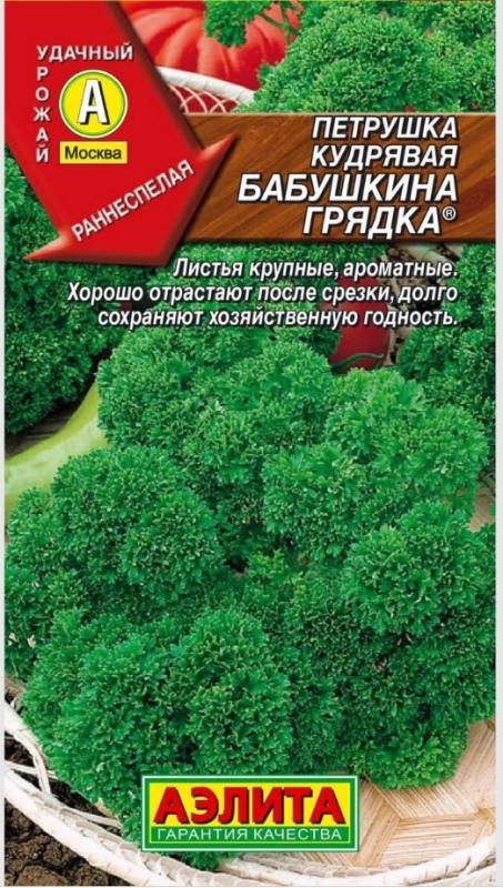 Высокоурожайный, очень ароматный, раннеспелый сорт кудрявой петрушки. Выборочно срезать листья начинают уже через 35-40 дней после всходов, первую массовую срезку проводят через 55-60 дней. Розетки плотные, высотой до 25 см, хорошооблиственные, массой 60-90 г. Листья крупные, приятного вкуса, хорошо отрастают после срезки и длительное время сохраняют товарный вид. Замечательно подходят для украшения блюд, приготовления салатов и консервирования. Сорт холодо- и засухоустойчивый. Подходит для выращивания в горшках на подоконниках.Посев в открытый грунт в самые ранние сроки (апрель) на глубину 1-1,5 см. В фазе 2-3-х настоящих листьев всходы прореживают, оставляя между растениями 5 см. За лето проводят несколько срезок зелени петрушки. Для получения более раннего урожая возможен посев под зиму, в конце октября – начале ноября.