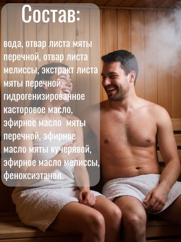 Натуральный отвар из мяты и мелиссы обладает успокаивающим действием, способствует избавлению от бессонницы. Уникальная рецептура без масел! Применяется для ароматизации парной и запаривания веников