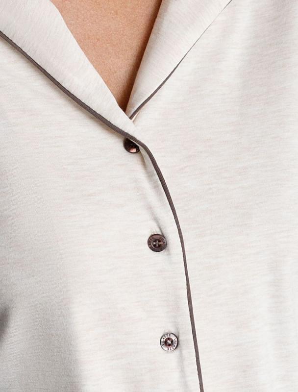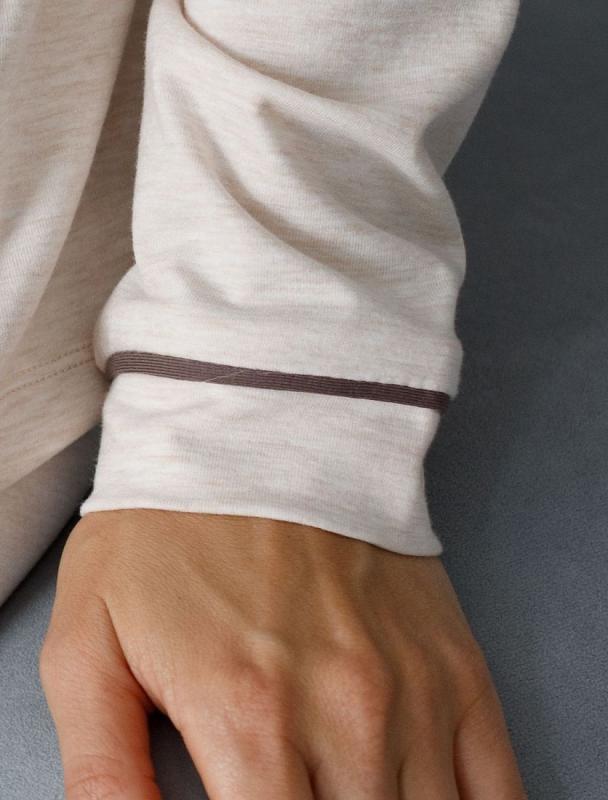 Блузка с английским воротом и длинным рукавом выполнена из эластичного хлопка. Модель дополнена контрастным кантом. Самые мягкие волокна премиального хлопка гарантируют непревзойденный комфорт в течении всего дня. Эластан в составе изделия, поддерживает форму и препятствует сминаемости. Сочетается в костюме с шортами D48.006 и брюками D44.120