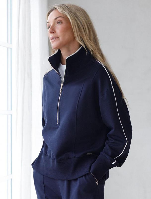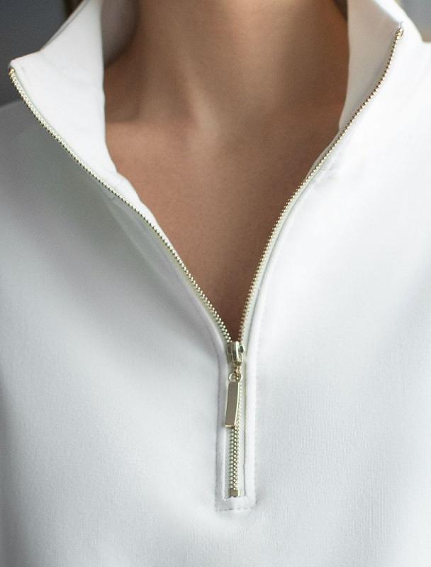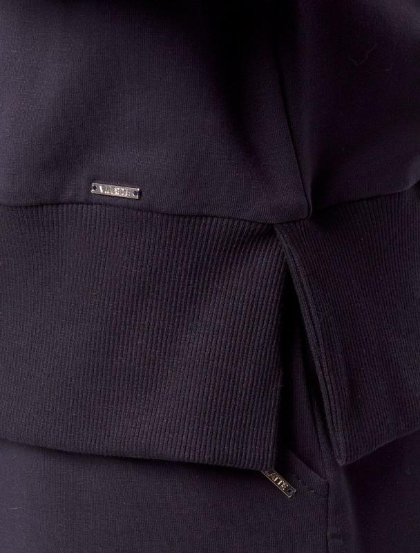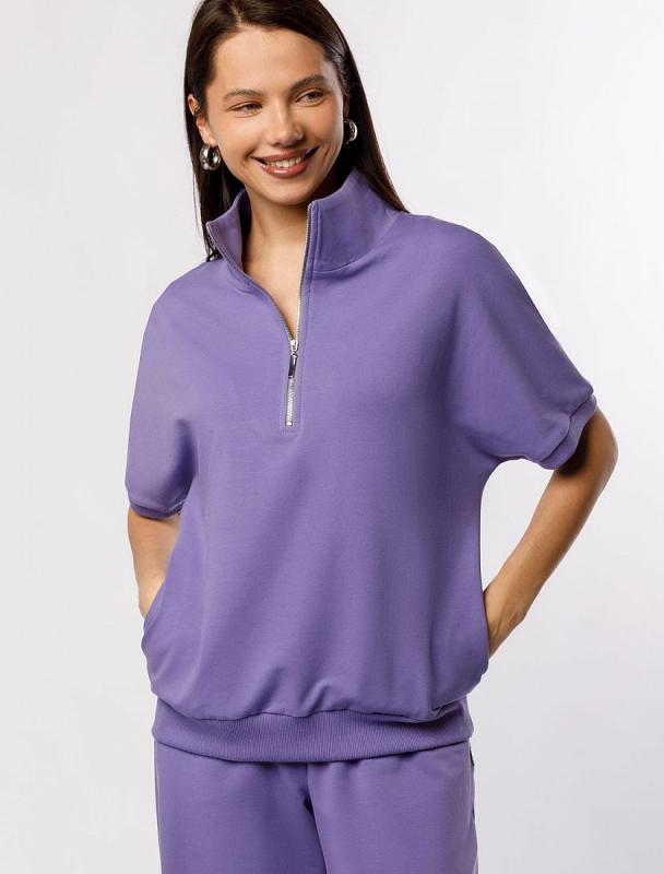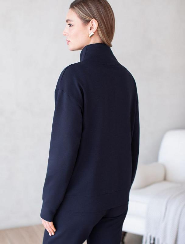 Джемпер среднего объема со спущенным плечом выполнен из футера двухнитки с эластаном. Изделие с воротом на золотистой молнии дополнено боковыми карманами. Эластичный материал гарантирует комфорт и формоустойчивость. Сочетается в костюме с брюками D44.138, D44.139 и шортами D48.008. Изделие дополнено металлическим логотипом бренда.