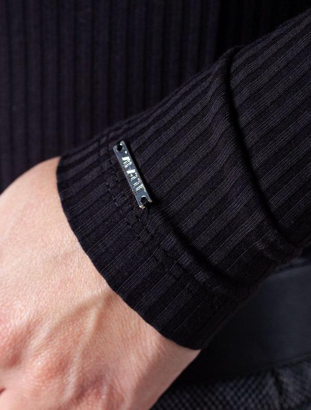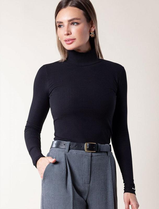 Водолазка выполнена из фактурного трикотажа в широкий рубчик. Модель с узким рукавом хорошо сидит по фигуре, подчеркивая достоинства. Полотно слаборастяжимое, рекомендуем брать изделие четко в соответствии с размером, а кто любит чуть свободнее — то на размер больше. Хлопковый трикотаж поддерживает оптимальную температуру тела, поэтому в изделии будет комфортно в течении всего дня. Наличие эластана в составе гарантирует формоустойчивости. Водолазка отлично впишется в деловой дресс-код и подойдет для повседневного аутфита.
