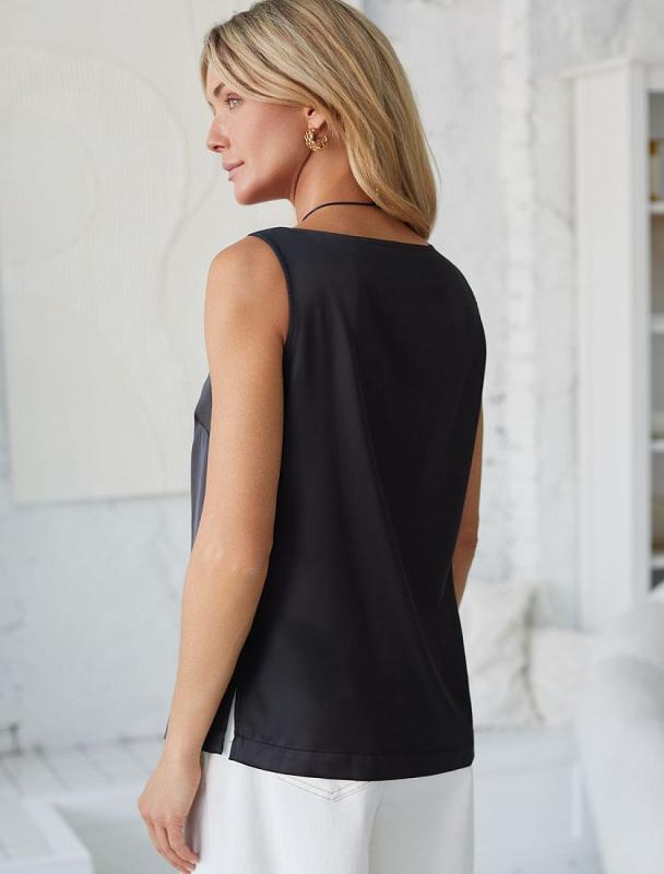 Топ выполнен из струящегося сатина напоминающий натуральный шелк. Модель с горловиной формы лодочка дополнена вытачками и двумя разрезами по бокам. Сочетайте изделие в костюме с юбкой D26.193 и брюками D24.221 чтобы создать роскошный праздничный образ. В комплекте с джинсами или любым другим низом из гардероба, для повседневного образа.