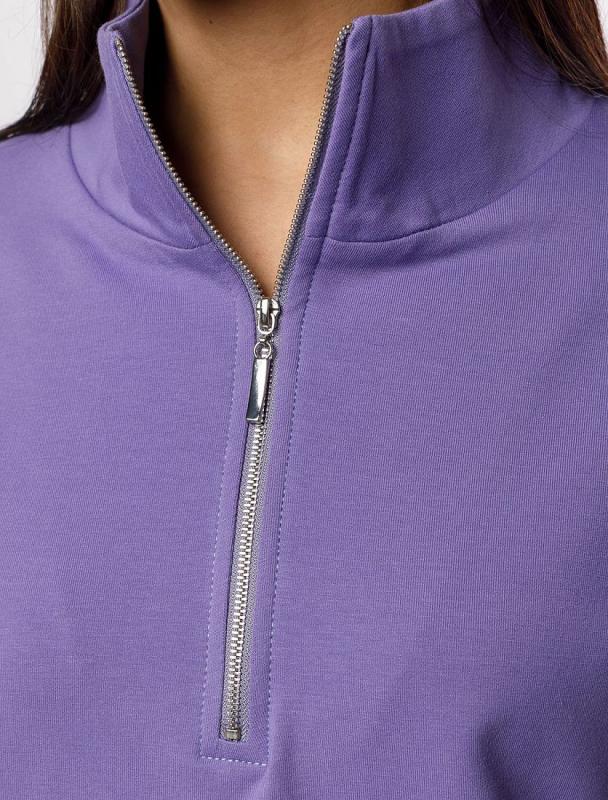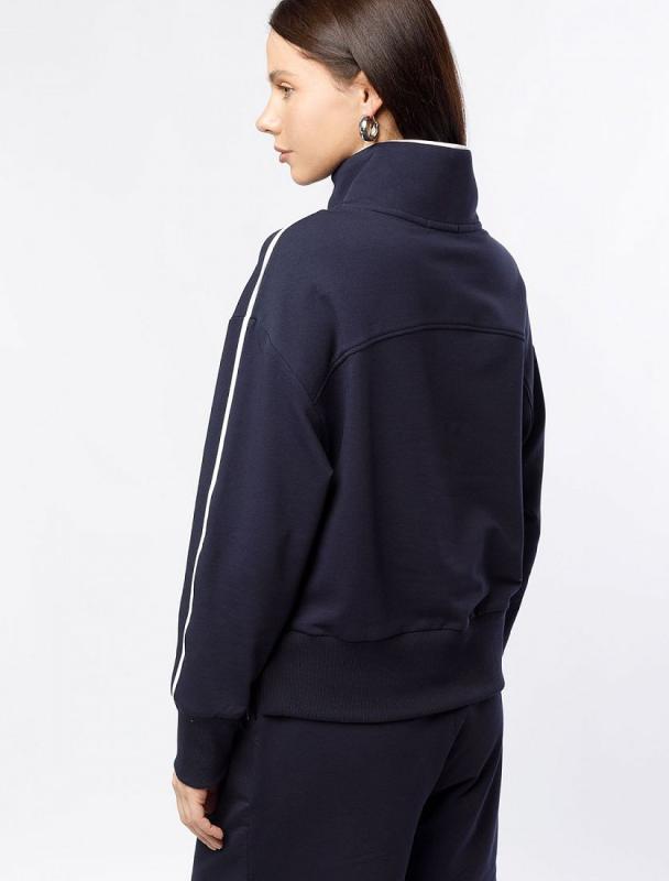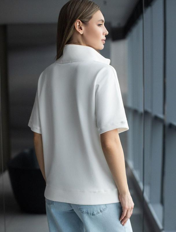 Джемпер с воротом на молнии выполнен из эластичного футера двухнитки. Модель умеренно свободного кроя. По рукавам и воротнику кант из футера контрасного цвета. Изделие дополнено золотистым логотипом бренда. Сочетается в костюме с брюками D44.141, D44.142, шортами D48.009 и юбкой-шортами D46.041. Правила ухода: использовать жидкое моющее средство (гель для стирки), добавлять к нему кислородный пятновыводитель для цветных вещей, и салфетки (защита от окрашивания). Стирка при 30 градусах, отжим на максимальных оборотах.