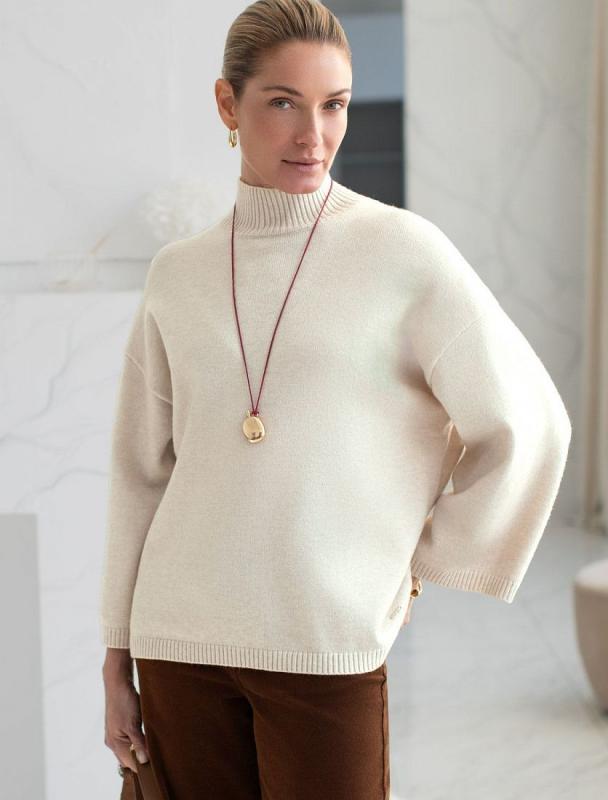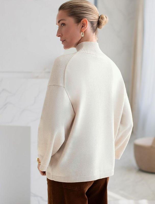 Свитер с классическим воротом выполнен из мягкой пряжи с кашемиром. Лаконичная модель свободного силуэта впишется в любой гардероб. Мягкая пряжа очень приятная к телу, поддержит комфорт на протяжении всего дня. Сочетается в костюме с брюками D38.013, D38.012 и юбкой D36.016