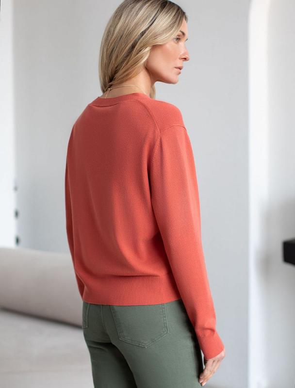 Коралловый свитер слегким меланжем связан из мягкого хлопка с нейлоном. Декоративное переплетение гладких элементов и лапши, делают модель уникальной. Сочетание вертикальных полос стройнит и вытягивает силуэт. Удерживает тепло в прохладную погоду и пропускает воздух, когда температура повышается. Идеальная посадка по фигуре и выгодная инвестиция в базовый гардероб.