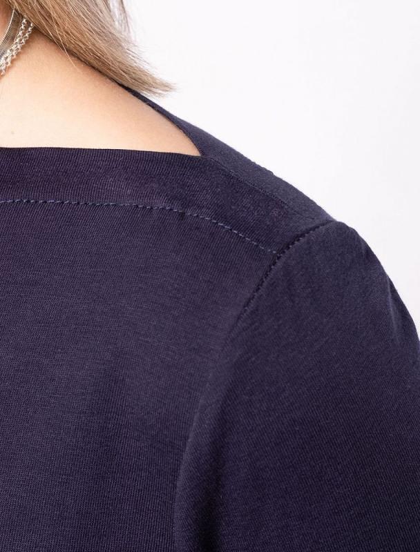 Футболка выполнена из фактурного трикотажа в широкий рубчик. Модель идеально сидит по фигуре не сковывая движения. Хлопковый трикотаж поддерживает оптимальную температуру тела, поэтому в изделии будет комфортно в течении всего дня. Наличие эластана в составе гарантирует формоустойчивости. Базовая модель впишется в любой гардероб.