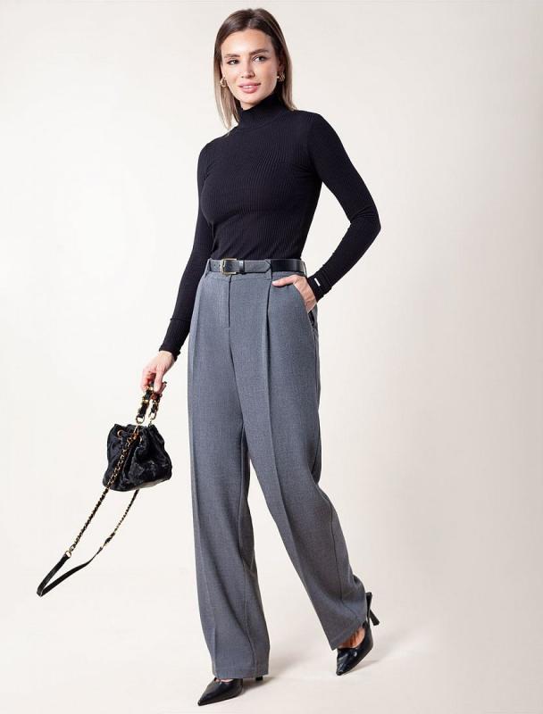 Брюки прямого кроя выполнены из супер-плотной эластичной поливискозы. Модель идеально подойдет для повседневных образов и впишется в офисный дресс код. Изделие с высокой посадкой визуально стройнит и вытягивает силуэт, удлиняет ноги. Свободный силуэт подходит для любой фигуры.