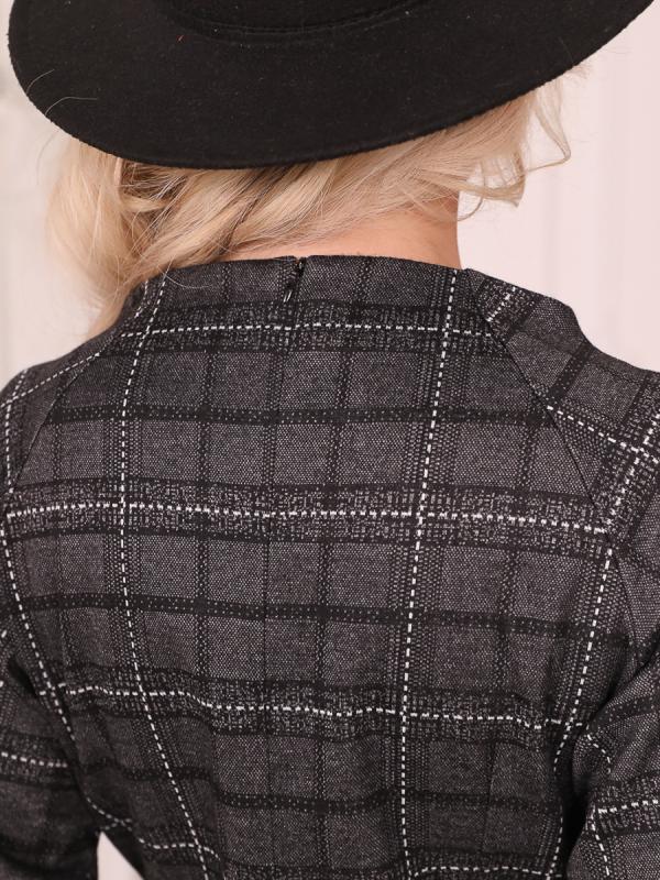 Женственное платье полуприлегающего силуэта из трикотажного полотна черно-серого цвета. Платье с воротником "