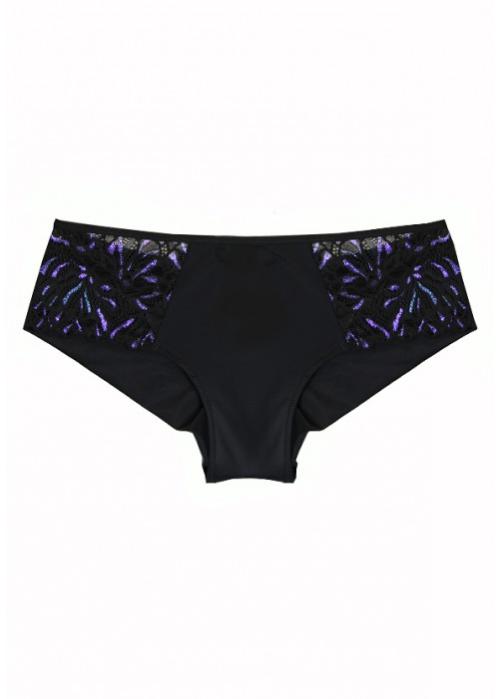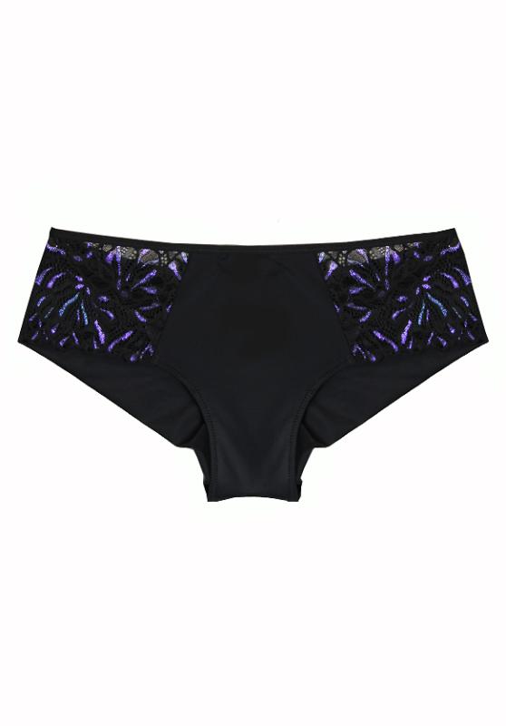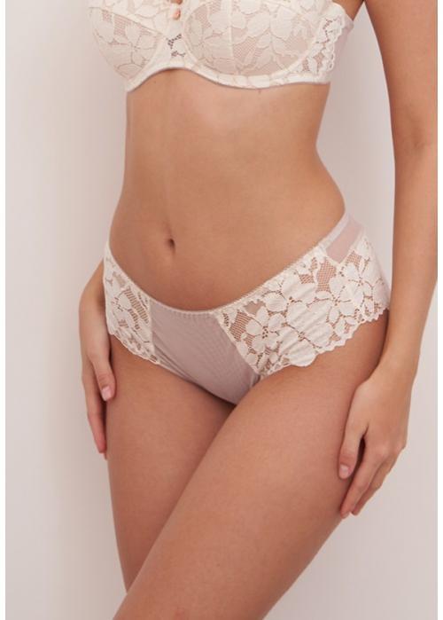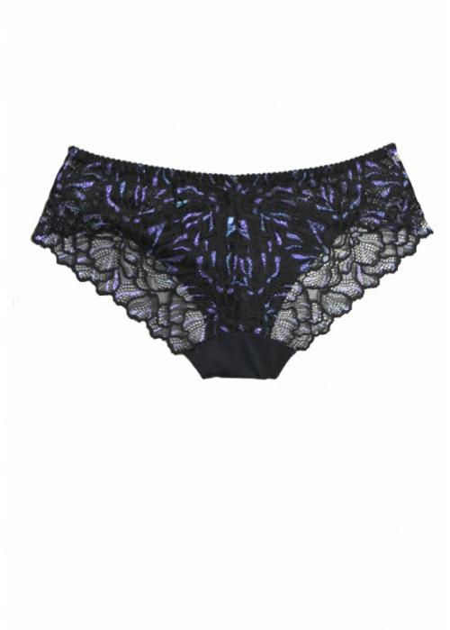 Трусы со средней линией талии, выполненные из изысканного орнаментального кружева и одотонного полотна. Благодаря тончайшей нити люрекса кружево наполнено деликатным мерцанием, которое оживает при каждом движении, подобно сиянию звезд в ночном небе.