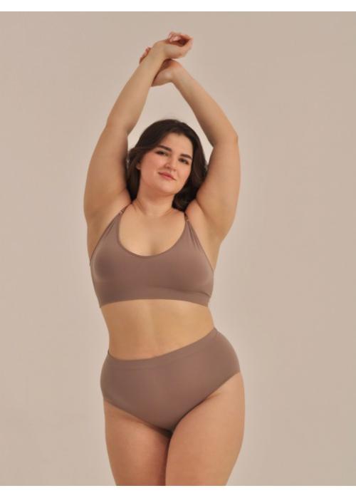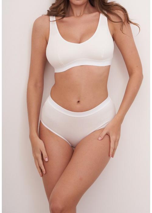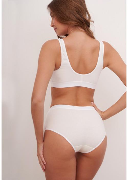 Трусы (брифы) со средней линией талии. Задняя деталь из кружева, без швов по краю. Не выделяются под одеждой.