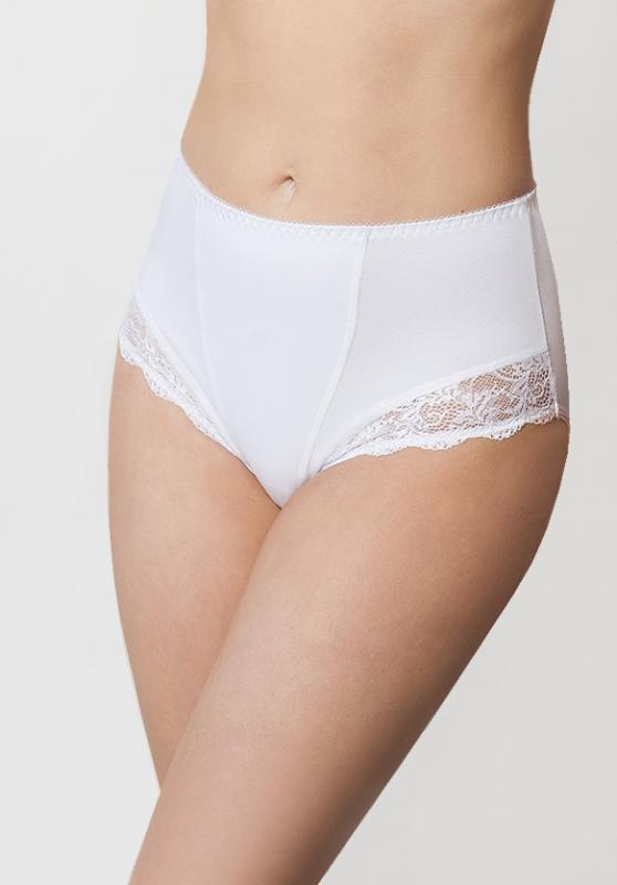 Трусики слипы высокой посадки с эффектом утяжки, декорированы кружевом по вырезу ножек.Состав: 80% хлопок, 12% эластан, 8% полиамид.
