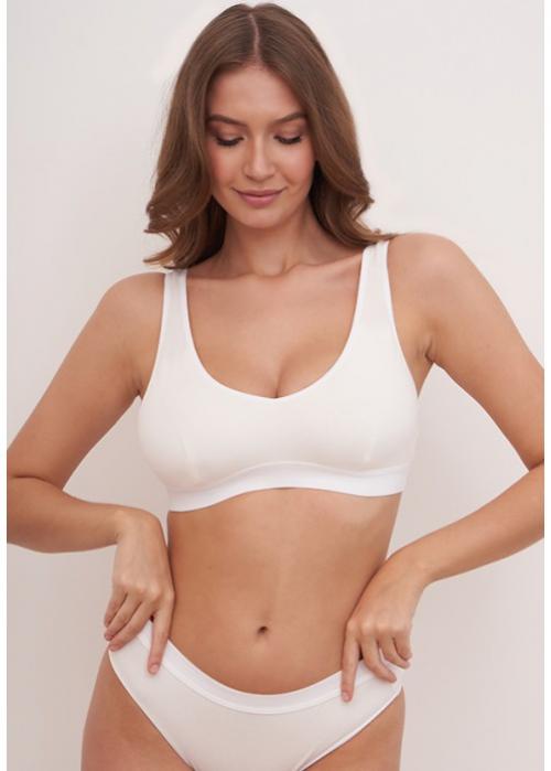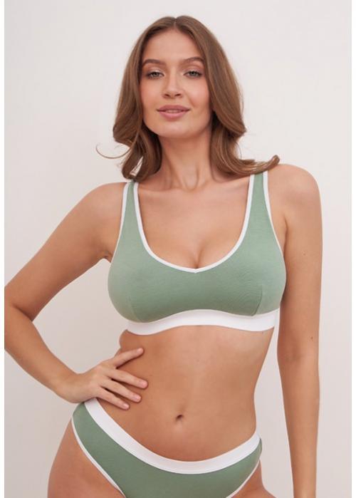 Бюстгальтер без каркасов из плотного трикотажного полотна. Съемные вкладыши, широкая, тугая резинка на стане. Удобная модель бюстгальтера для постоянного использования и активного отдыха.