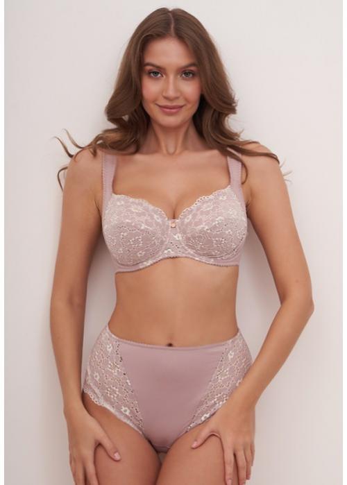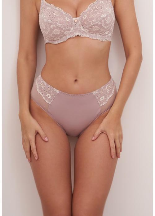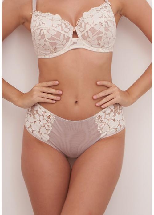 Комфортные трусы с высокой линией талии из нарядного кружева и сетчатого полотна. Изящные трусы не выделяются под одеждой (нет шва по краю задней детали). Это бельё создано для тех, кто ценит эстетику, лёгкость и утончённость.