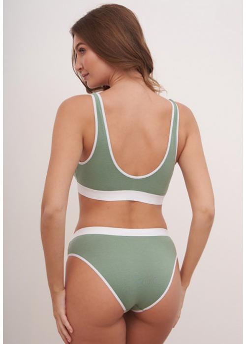 Бюстгальтер без каркасов из плотного трикотажного полотна. Съемные вкладыши, широкая, тугая резинка на стане, регулируемые бретели. Удобная модель бюстгальтера для постоянного использования и активного отдыха.