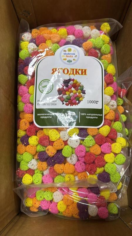 мармелад перемешаны в кислой обсыпке, микс, содержание и соотношение видов мармелада в разных коробках разное