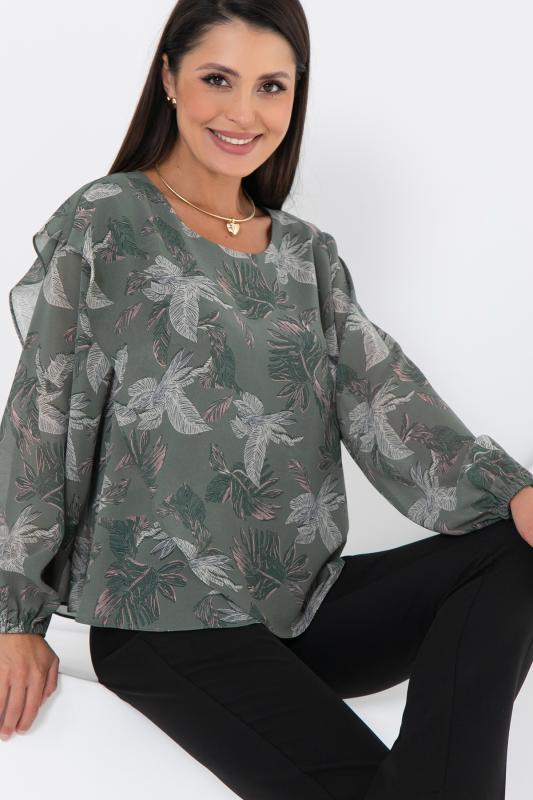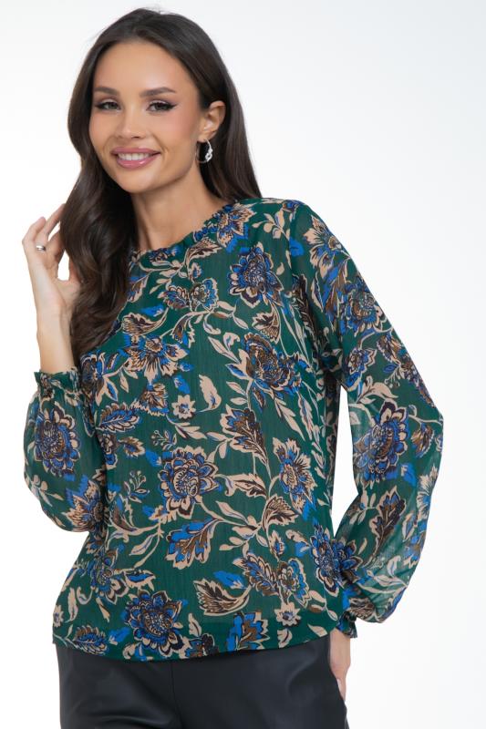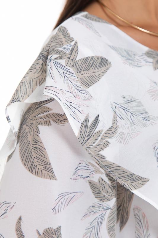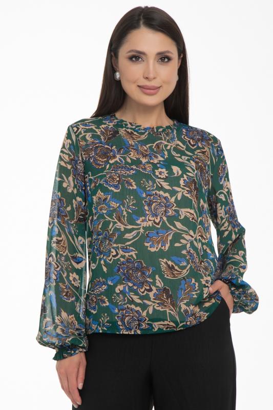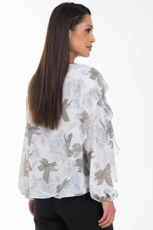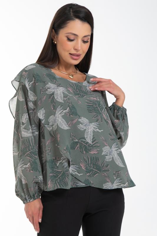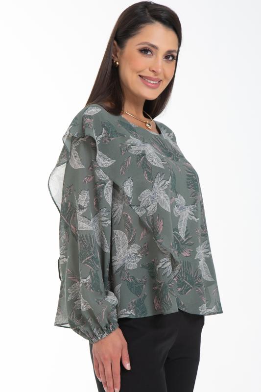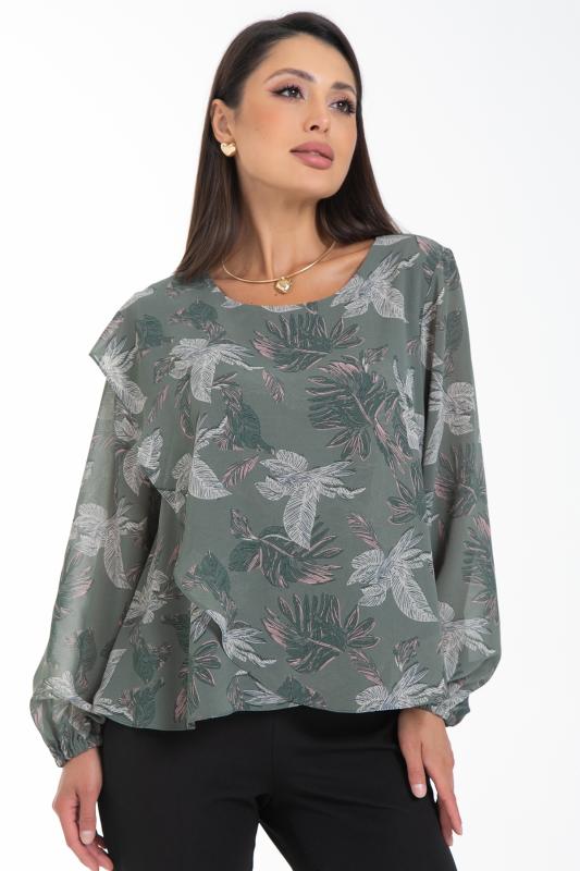 Изысканная блузка, сотканная из очарования. Уникальная жаккардовая фактура шифона придает легкому полотну благородную объемность, игру света и тени, создавая эффект роскошной ткани. Это та деталь, которая превращает простое изделие в предмет искусства. Дизайн блузки — это воплощение современной элегантности. Её оригинальный крой с наложением драпирующих деталей создает динамичный и живописный силуэт. Одно плечо эффектно ниспадает мягким «крылышком», добавляя образу скульптурности и женственности. Длинные пышные рукава, собранные на тонкую резинку на запястье, контрастируют с лаконичной круглой горловиной, подчеркивая хрупкость шеи и линию декольте. Такие рукава дарят ощущение легкости и романтики с каждым движением.
