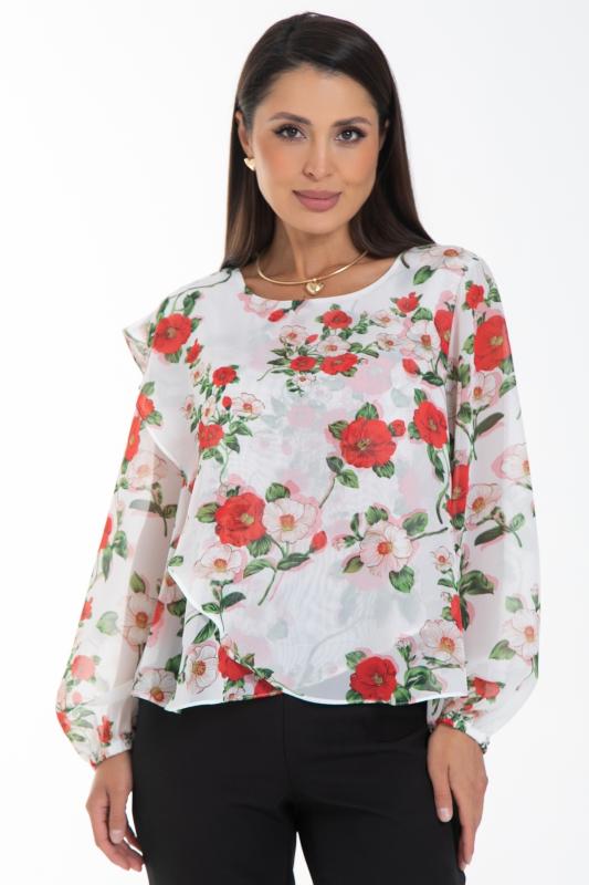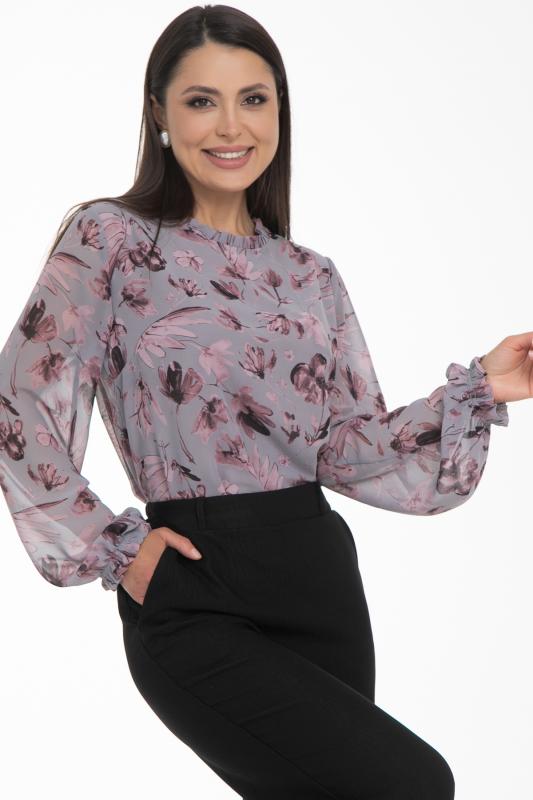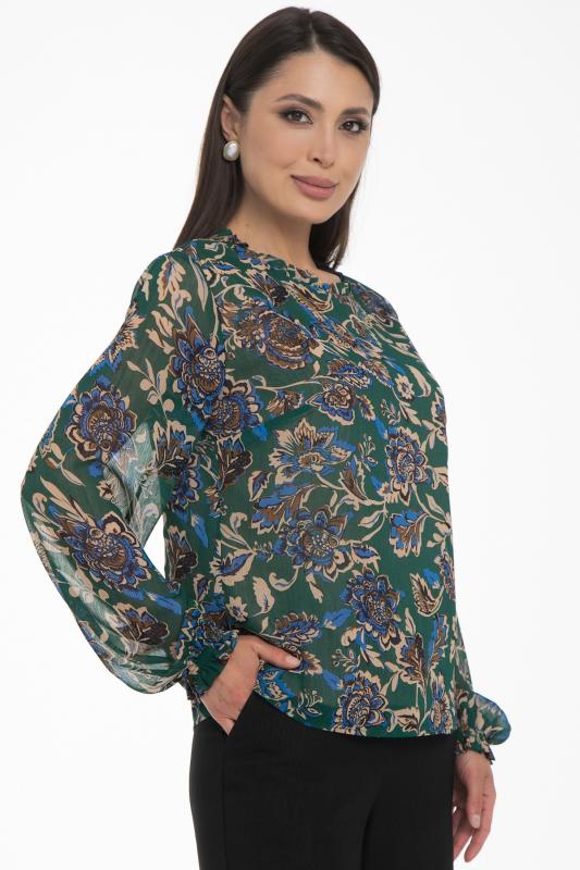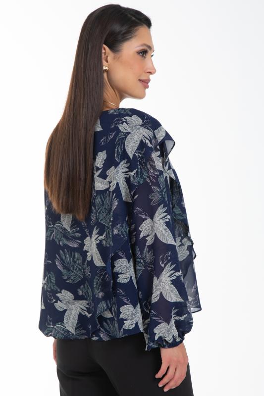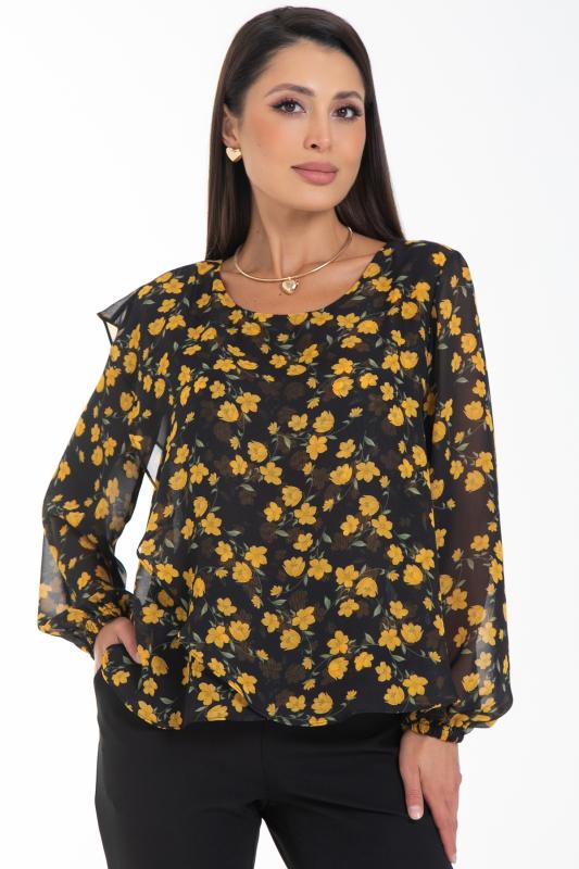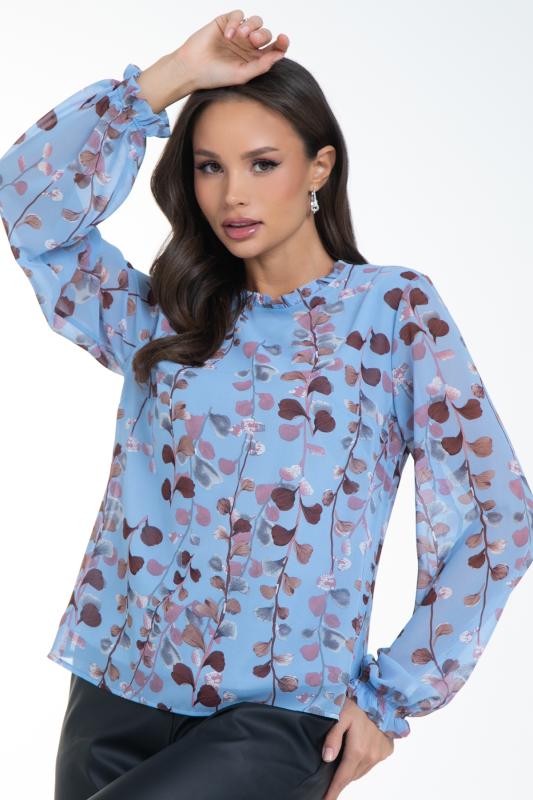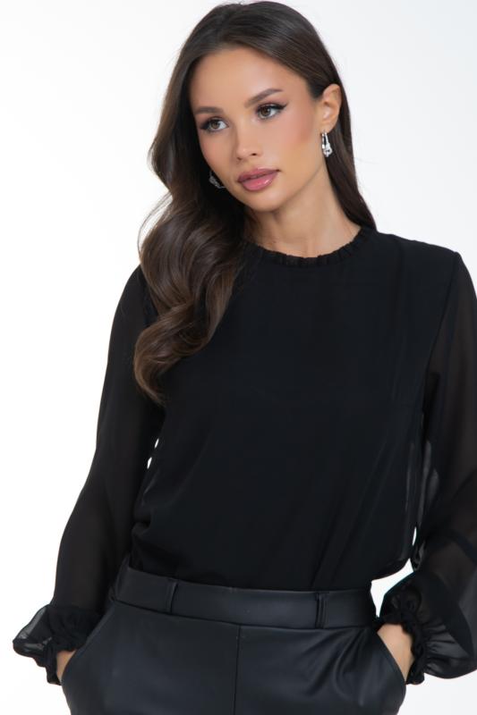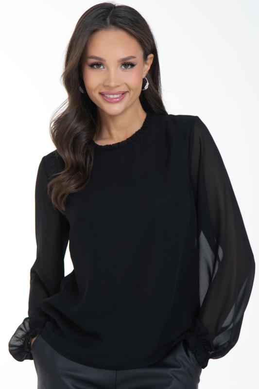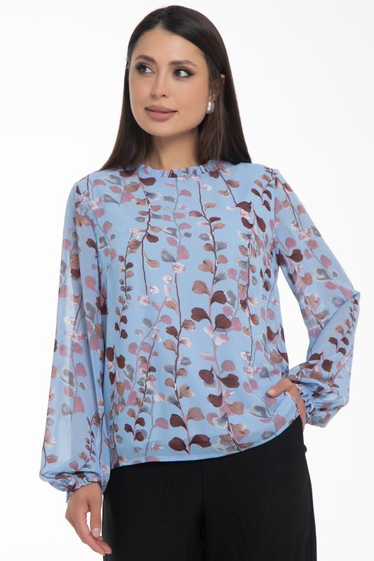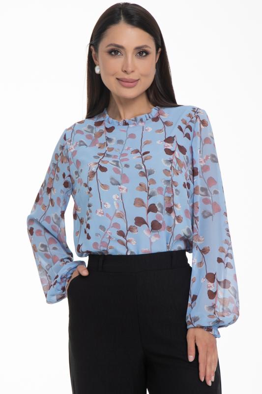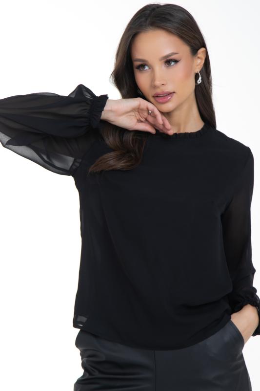 Очаровательная свободная шифоновая блузка, подчеркивающее женственность - отличное решение на каждый день или на праздник для современной стильной женщины. Шикарная модель с объемными длинными рукавами выполнена из высококачественного шифона. Круглая горловина оформлена рюшей с застежкой на пуговицу на спине.Нежная блузка из шифона на трикотажном подкладе, по переду сделаны вытачки на грудь, рукава втачные пышные, длинные, снизу собраны на резинку.