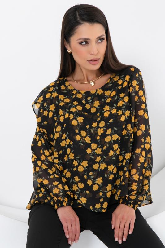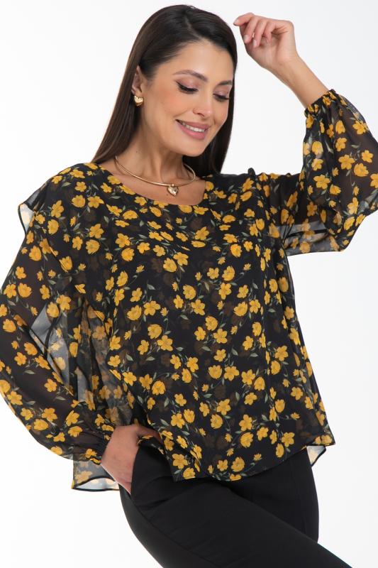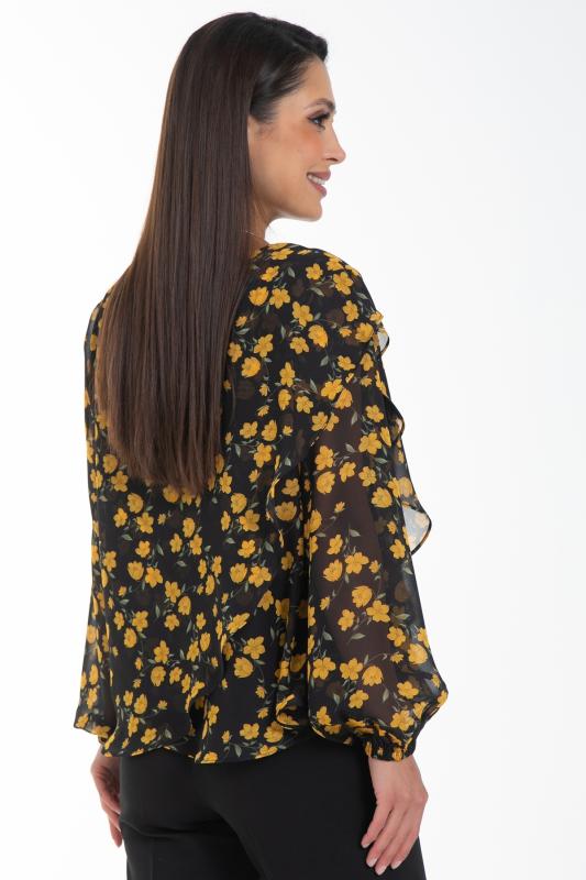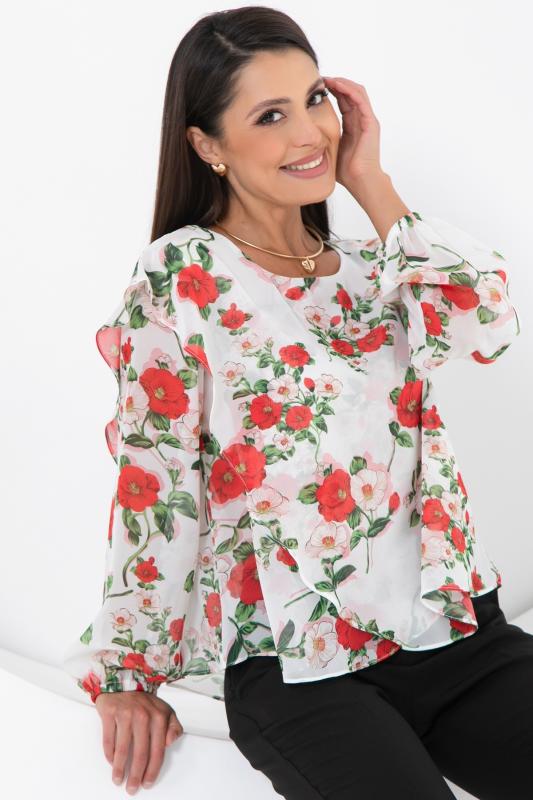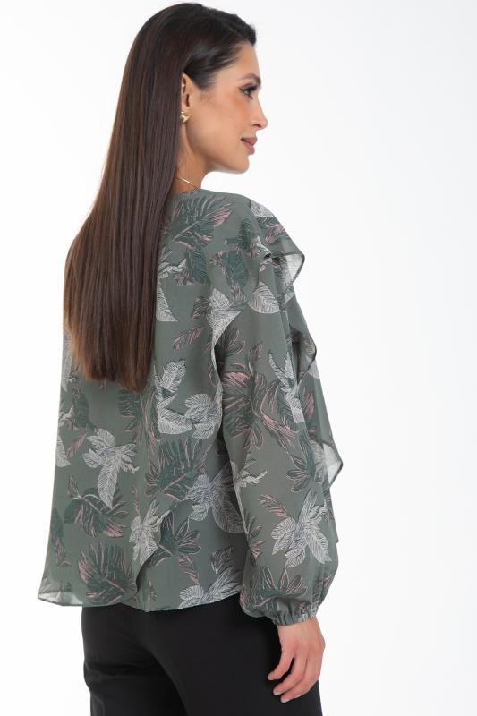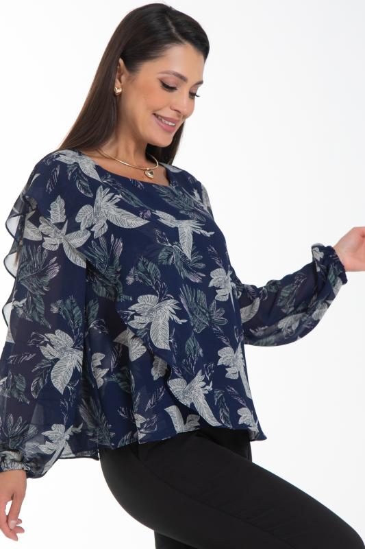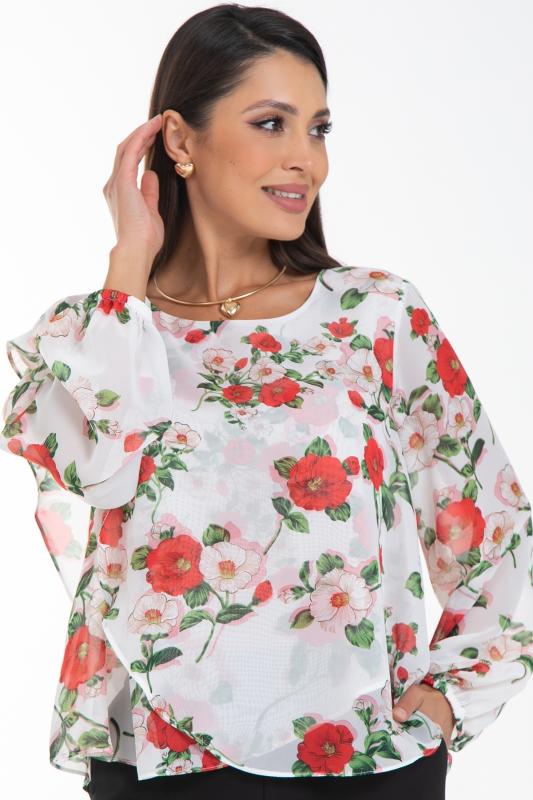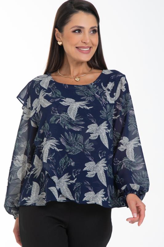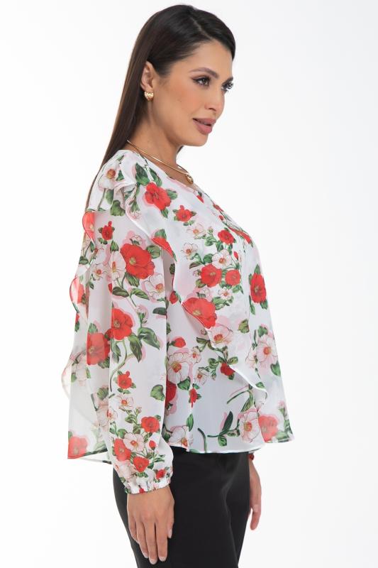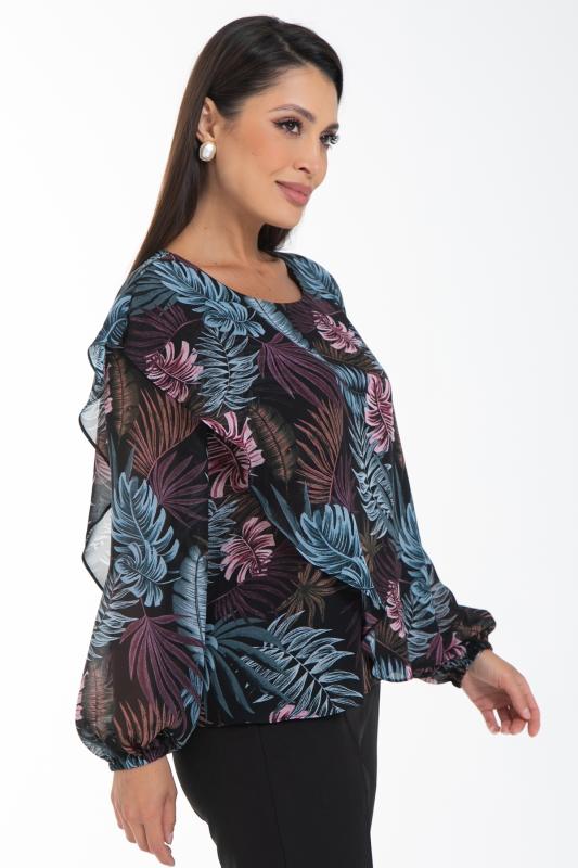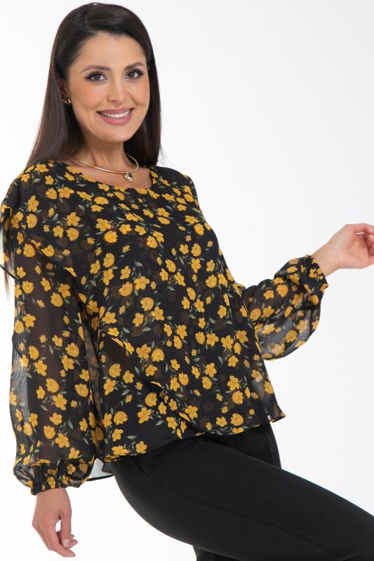 Очаровательная свободная шифоновая блузка, подчеркивающее женственность - отличное решение на каждый день или на праздник для современной стильной женщины. Шикарная модель с объемными длинными рукавами выполнена из высококачественного шифона. Круглая горловина оформлена рюшей с застежкой на пуговицу на спине.Нежная блузка из шифона на трикотажном подкладе, по переду сделаны вытачки на грудь, рукава втачные пышные, длинные, снизу собраны на резинку.