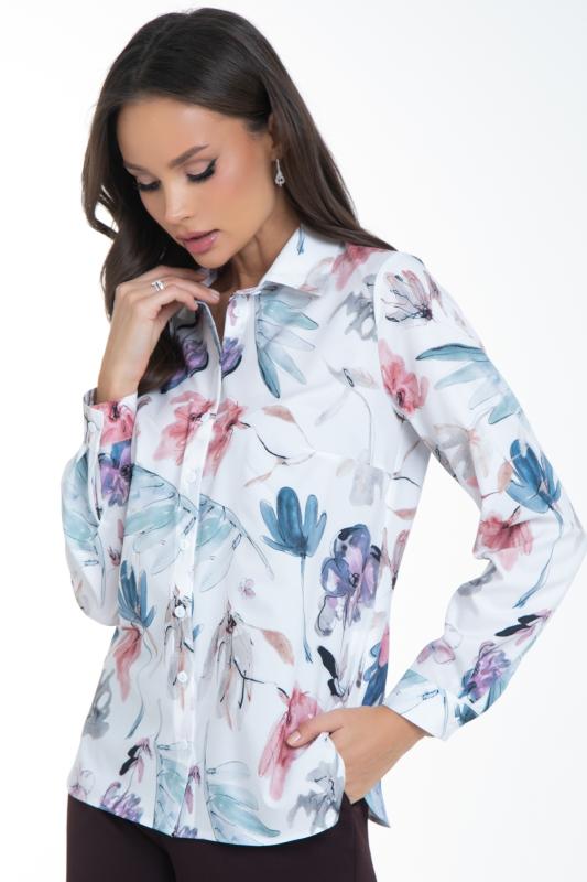 Возвращение любимой модели от Diolche. Блузка продуманного и универсального фасона, идеально подходящего под любой низ. Оригинальный авторский принт в базовой рубашке- изюминка любого гардероба: для создания делового образа, повседневного или праздничного. Можно носить как с классическими брюками и юбками, так и с джинсами или под сарафан. Прекрасно смотрится как в заправленном состоянии, так и на выпуск. Благодаря ткани блузка практически не мнется, обладает износостойкостью, обеспечивает идеальный комфорт. Ткань легкая и не просвечивает. Классическая, немного приталенная рубашка с воротничком на стойке. Застёгивается спереди на пуговицы. Рукав 3-4 на манжете. Спереди по бокам сделаны вытачки на грудь. По спинке сделаны вытачки в области талии. Удобная, комфортная вещь на все случаи жизни! Модель выполнена из блузочной ткани высокого качества.