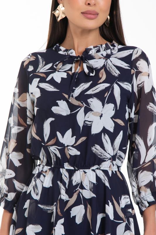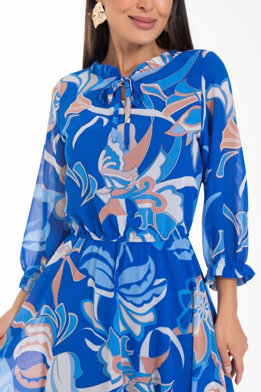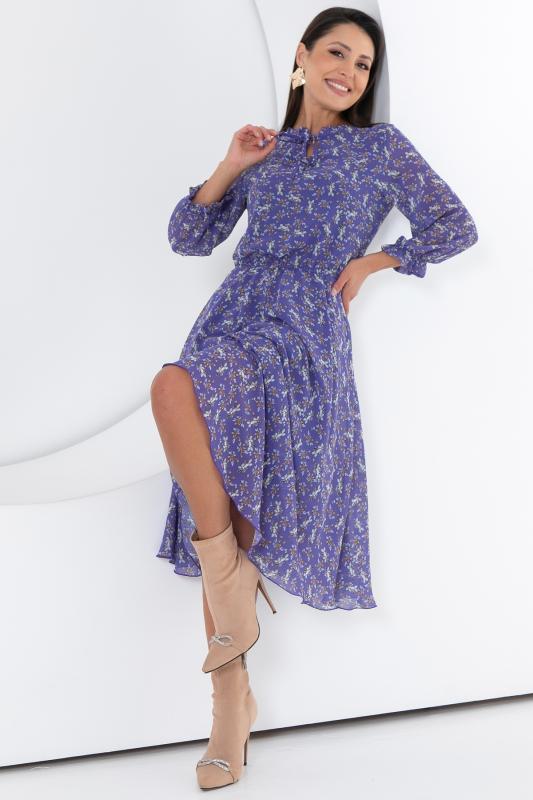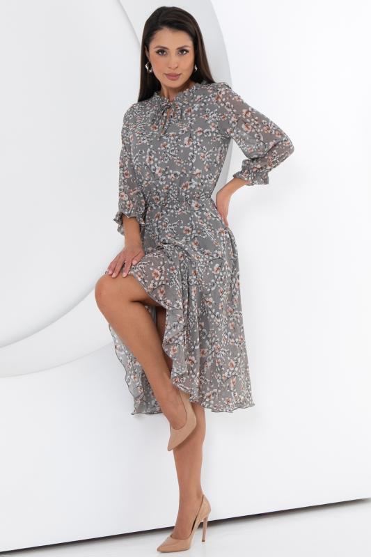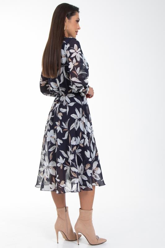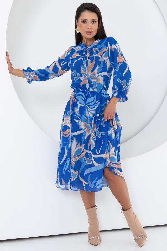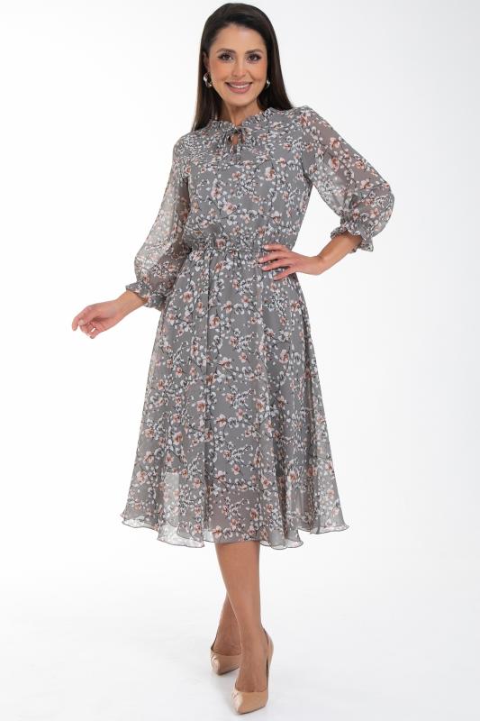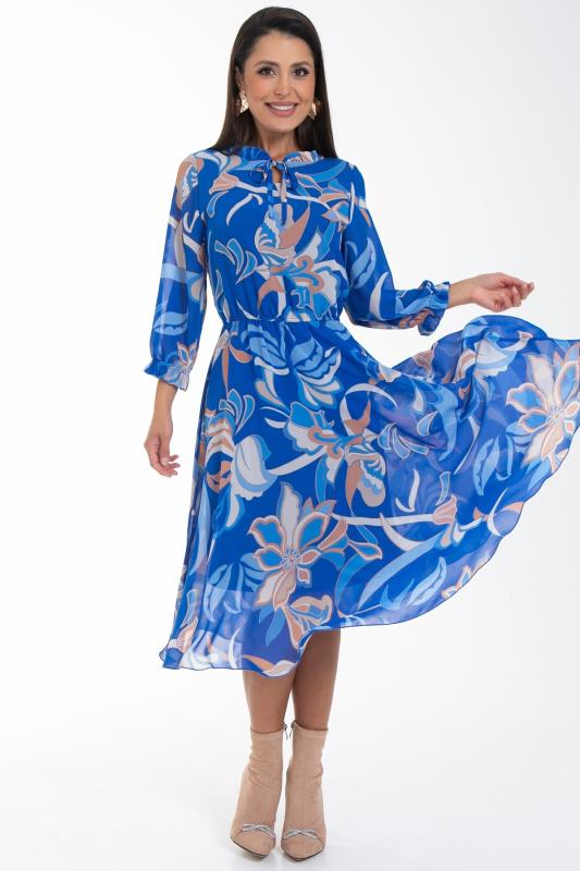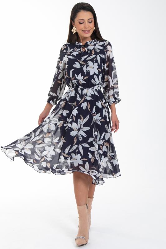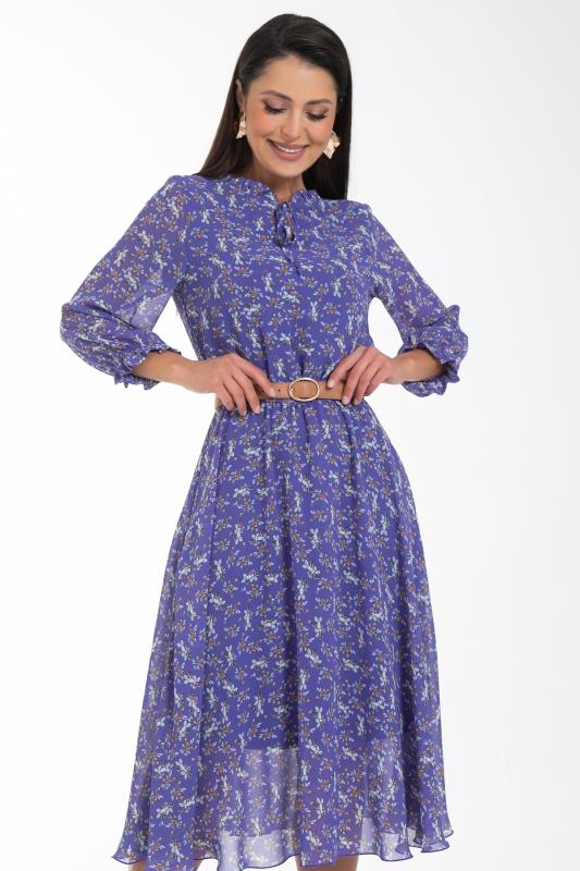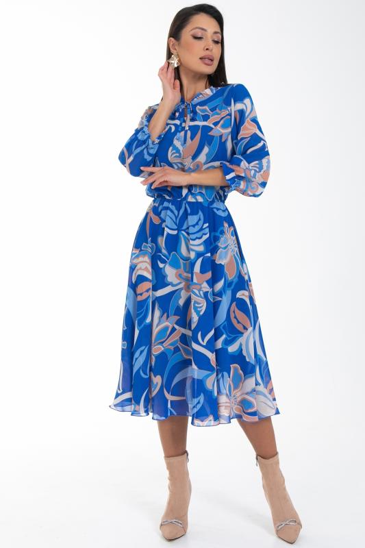 Восхищайте и удивляйте! Элегантное шифоновое платье, подчеркивающее женственность - отличное решение на каждый день или на праздник для современной стильной женщины. Шикарная модель с пышными красивыми рукавами выполнена из высококачественного шифона с авторским цветочным принтом. Очаровательное свободное платье с юбкой полу-солнце создаст нежный воздушный образ! Круглая горловина оформлена рюшей с застежкой на пуговицу на спине. Платье имеет идеальную посадку благодаря индивидуальной корректировки длины за счет мягкой комфортной резинки на талии. По переду сделаны вытачки на грудь. Платье отрезное по талии. Рукава втачные длинные, снизу подогнуты и сосборены на резинку. Платье с подкладом, притачным по горловине и пройме. Поставляется без ремня в комплекте, ремень на фото как пример образа.