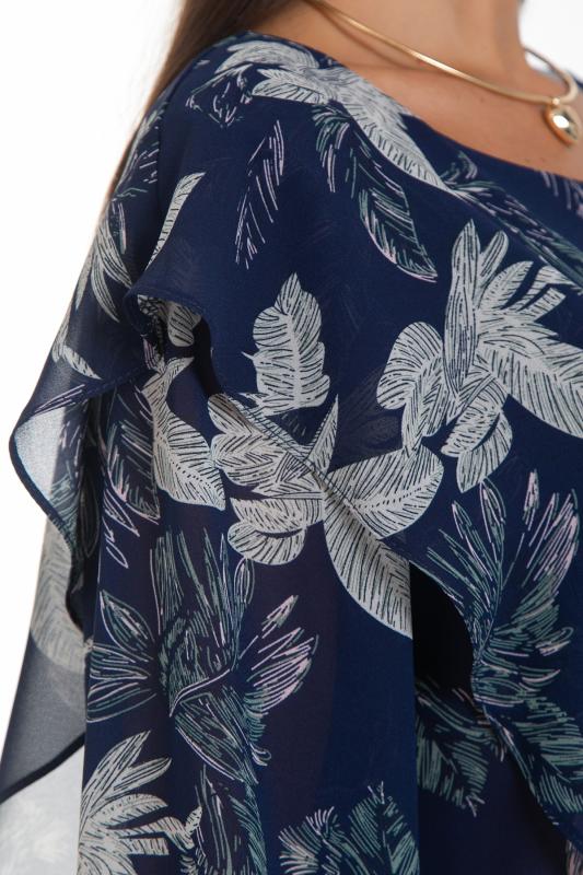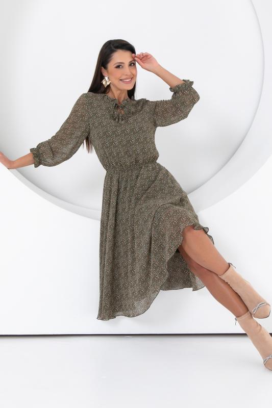 Летящее шифоновое платье подчёркивает достоинства вашей фигуры, делает Ваш образ женственным и нежным. Юбка платья полусолнце отрезная по линии талии. Полупрозрачные втачные рукава длиной 3-4 с низу подогнуты и сосборены на резинку. Платье с подкладом,притачным по горловине и пройме.По талии платье присборено на шпульную резину. Модель выполнена из шифона и трикотажного подклада.