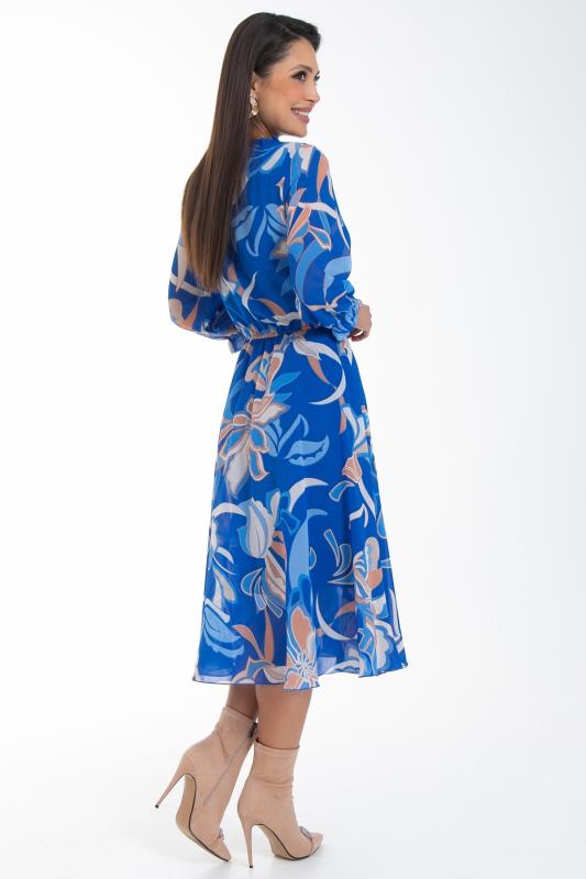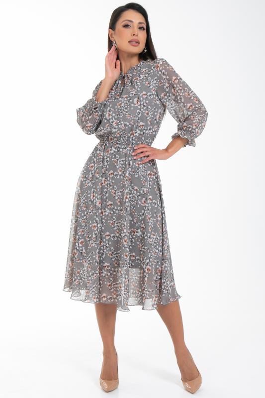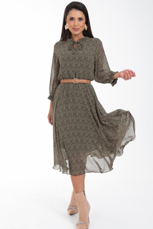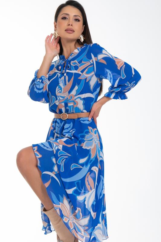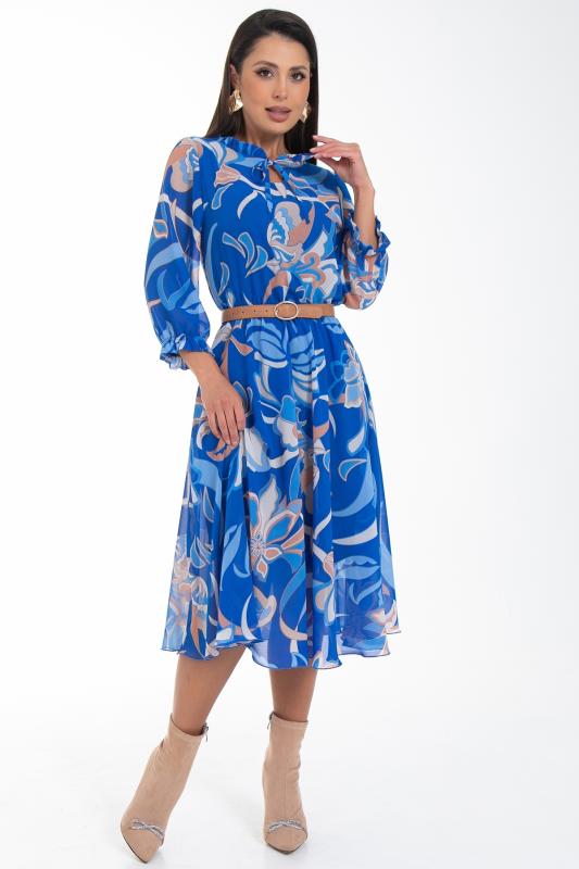Восхищайте и удивляйте! Элегантное шифоновое платье, подчеркивающее женственность - отличное решение на каждый день или на праздник для современной стильной женщины. Шикарная модель с пышными красивыми рукавами выполнена из высококачественного шифона с дизайнерским принтом. Очаровательное свободное платье с юбкой полу-солнце создаст нежный воздушный образ! Круглая горловина с застежкой на пуговицу на спине. Платье имеет идеальную посадку благодаря индивидуальной корректировки длины за счет мягкой комфортной резинки на талии. По переду сделаны вытачки на грудь. Платье отрезное по талии. Рукава втачные длинные, снизу подогнуты и сосборены на резинку. Платье с подкладом, притачным по горловине и пройме. Поставляется без ремня в комплекте, ремень на фото как пример образа.
