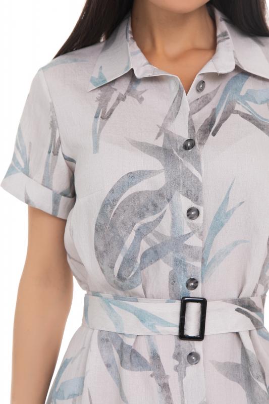 Прямое современное платье-рубашка с идеальной посадкой от дизайнеров Diolche. Легкое и стильное платье из вискозной ткани- отличный вариант для создания комфортных и модных образов. Благодаря авторскому принту и высокому качеству материала, создается неповторимый образ, который запомнится надолго. Натуральная ткань высокого качества дарит ощущение комфорта в жаркие летние дни. Платье застёгивается спереди на петли-пуговицы. Воротничок на стойке, по переду сделаны вытачки на грудь. По спинке сделаны две вытачки приталивания. Рукав короткий, втачной, с манжетом. В области талии и бёдер свободного прилегания. Платье дополняется поясом из основной ткани с красивой пряжкой.