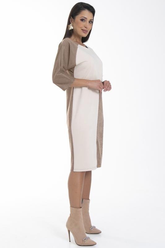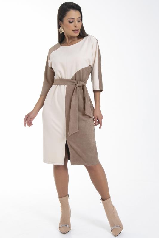 Восхищай! Красивое женское платье футляр с рукавом 3-4 идеально впишется в деловой, повседневный и праздничный образ, эффектно смотрится на любой фигуре. Это готовый образ, который и смотрится хорошо, и является универсальным нарядом на все случаи жизни. Стильное комбинированное платье полуприлегающего силуэта с цельнокроеными рукавами и пикантным разрезом. Спинка из двух частей. Перед комбинирован из двух цветов.