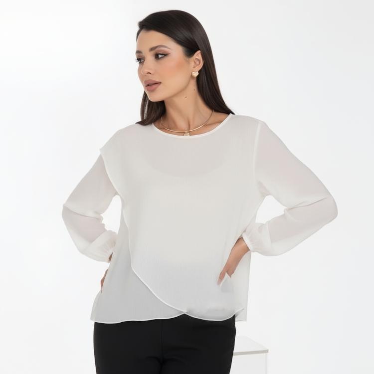 Бестселлер! Дизайнерская шифоновая блузка Diolche - идеальный выбор для создания стильного и запоминающегося образа. Ассиметричный крой придают блузке изысканность и неповторимость. Благодаря своему универсальному дизайну и качеству исполнения, эта блузка-туника с длинными пышными рукавами станет вашим надежным помощником в создании идеального образа и скроет все недостатки фигуры. Благодаря многослойности ,блуза не просвечивает . В обработке срезов использован люксовый способ подгибки "