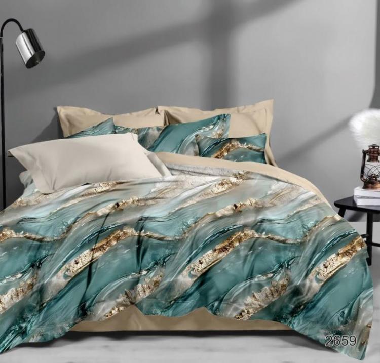 Евро спальный. Пододеяльник: 200х218 - 1 шт. на молнии Простыня: 240х218 - 1 шт. Наволочки: 70х70 - 2 шт. на молнии