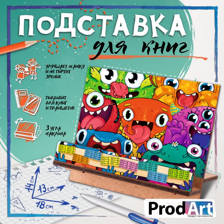 Универсальная подставка для книг с яркими забавными монстриками и таблицей умножения.&