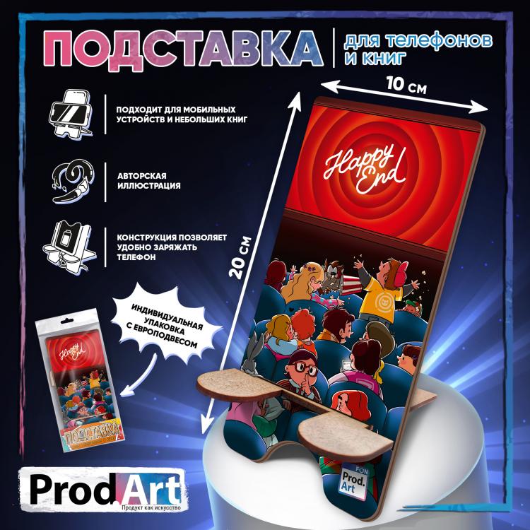 Подставка с яркой иллюстрацией, которая передает уютную атмосферу кинотеатра Серия состоит из подставок с авторскими иллюстрациями. Красочные персонажи, мотивирующие надписи и милые послания поднимут настроение и настроят на рабочий лад. В наших подставках продуманно все легкая сборка, экологичный материал, удобство зарядки гаджета. Благодаря ярким подставкам мобильное устройство всегда на виду, при этом рабочий стол будет выглядеть красиво и стильно. &