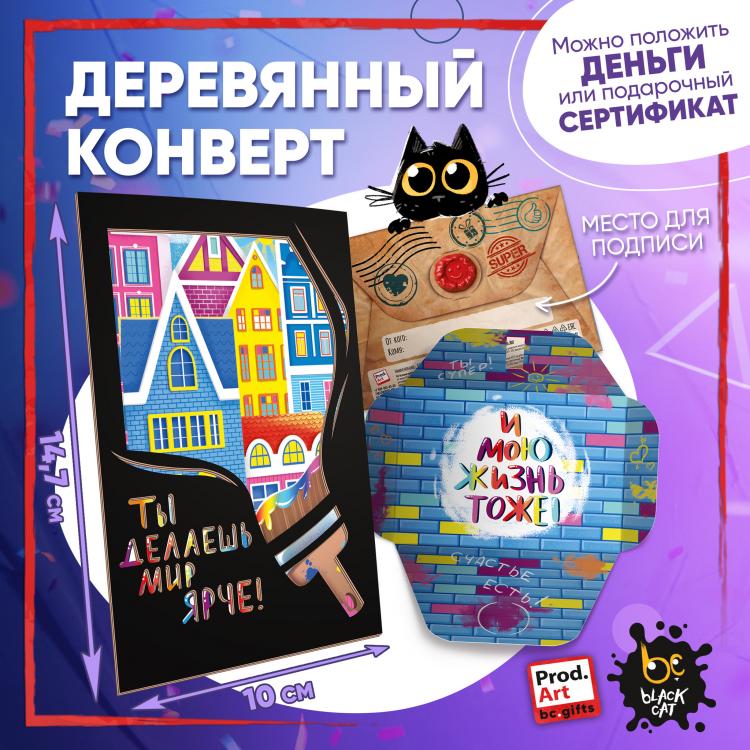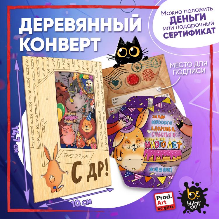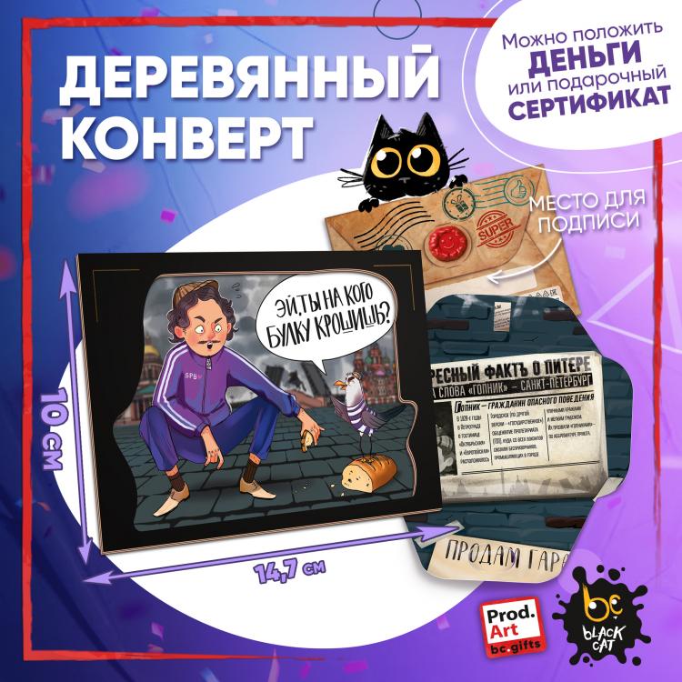 - Санкт-Петербург Подарочный конверт поможет проявить внимание и красиво поздравить близкого человека. Наполнить конверт можно не только деньгами, а, например, вложить подарочный сертификат или записку с искренним посланием. Стильное оформление с деревянной вставкой превратит подарок в приятный сюрприз! Конверты украшены авторскими иллюстрациями, тёплыми пожеланиями и забавными фразами. В ассортименте представлены дизайны для разных поводов. Каждый конверт упакован в индивидуальный полиэтиленовой пакет.