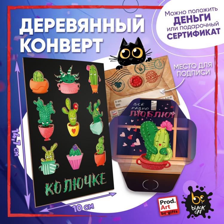 Надпись внутри конверта: Все равно люблю. Подарочный конверт поможет проявить внимание и красиво поздравить близкого человека. Наполнить конверт можно не только деньгами, а, например, вложить подарочный сертификат или записку с искренним посланием. Стильное оформление с деревянной вставкой превратит подарок в приятный сюрприз! Конверты украшены авторскими иллюстрациями, тёплыми пожеланиями и забавными фразами. В ассортименте представлены дизайны для разных поводов. Каждый конверт упакован в индивидуальный полиэтиленовой пакет.