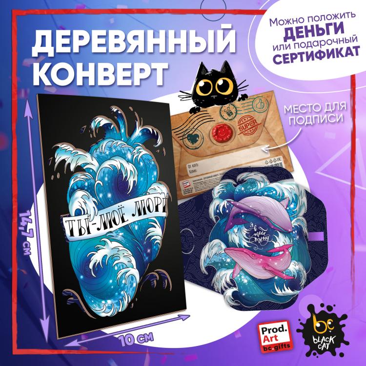 Надпись внутри конверта: Я в тебе тону. Подарочный конверт поможет проявить внимание и красиво поздравить близкого человека. Наполнить конверт можно не только деньгами, а, например, вложить подарочный сертификат или записку с искренним посланием. Стильное оформление с деревянной вставкой превратит подарок в приятный сюрприз! Конверты украшены авторскими иллюстрациями, тёплыми пожеланиями и забавными фразами. В ассортименте представлены дизайны для разных поводов. Каждый конверт упакован в индивидуальный полиэтиленовой пакет.