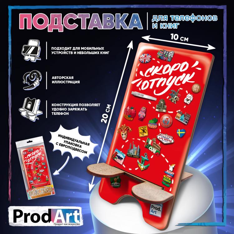 Подставка с изображением яркого холодильника с магнитами, прекрасное напоминание о путешествиях и предстоящем отпуске. Серия состоит из подставок с авторскими иллюстрациями. Красочные персонажи, мотивирующие надписи и милые послания поднимут настроение и настроят на рабочий лад. В наших подставках продуманно все легкая сборка, экологичный материал, удобство зарядки гаджета. Благодаря ярким подставкам мобильное устройство всегда на виду, при этом рабочий стол будет выглядеть красиво и стильно. &