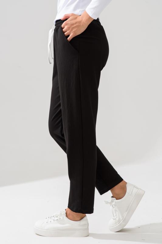 Брюки - бананы. Эластичный пояс с завязками для удобной посадки. Два глубоких боковых кармана. Защипы внизу штанин удлиняют ноги и создают женственный силуэт. Подходят всем. Широкая размерная линейка от 42-58. Для любого типа фигуры.