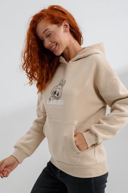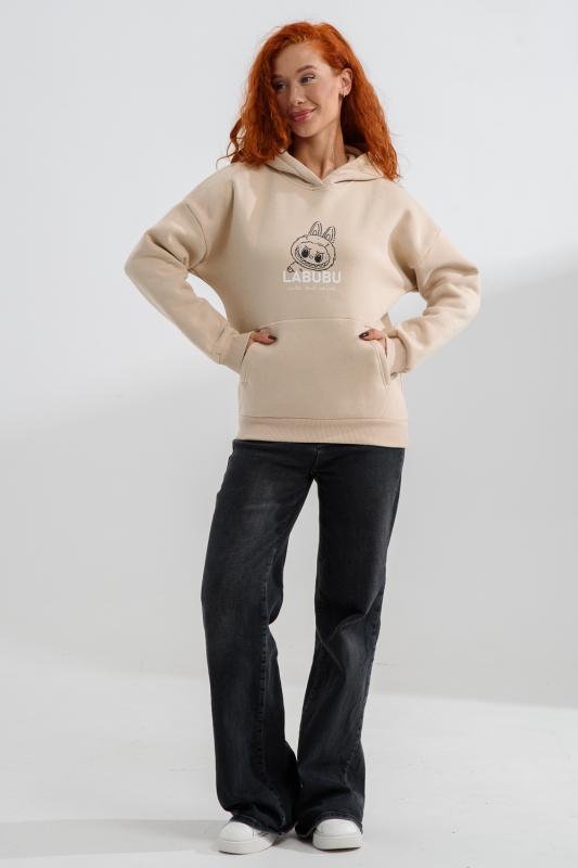 Утепленная толстовка с начесом, свободного кроя оверсайз, с длинным рукавом, объемным капюшоном и удобным карманом «кенгуру» – незаменимая, уже классическая повседневная вещь, которую можно сочетать с любой одеждой для создания стильных образов. Длина рукава измеряется от горловины.