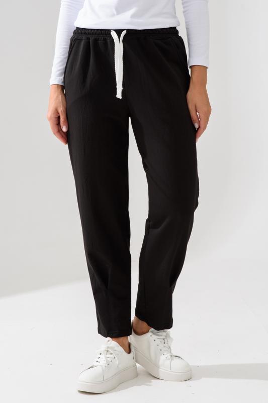 Брюки женские это универсальные прямые штаны, которые подойдут под любой образ: классический, домашний или спортивный. Брюки спортивные женские из турецкого хлопка имеют эластичный мягкий пояс с завязками и два глубоких боковых кармана. Можно отрегулировать как высокую или среднюю, так и низкую посадку. Брюки не скатываются и не линяют, держат форму и не мнутся, а колени не вытягиваются даже спустя время. Спортивные штаны женские представлены в широкой размерной линейке от 44 до 58 размера.